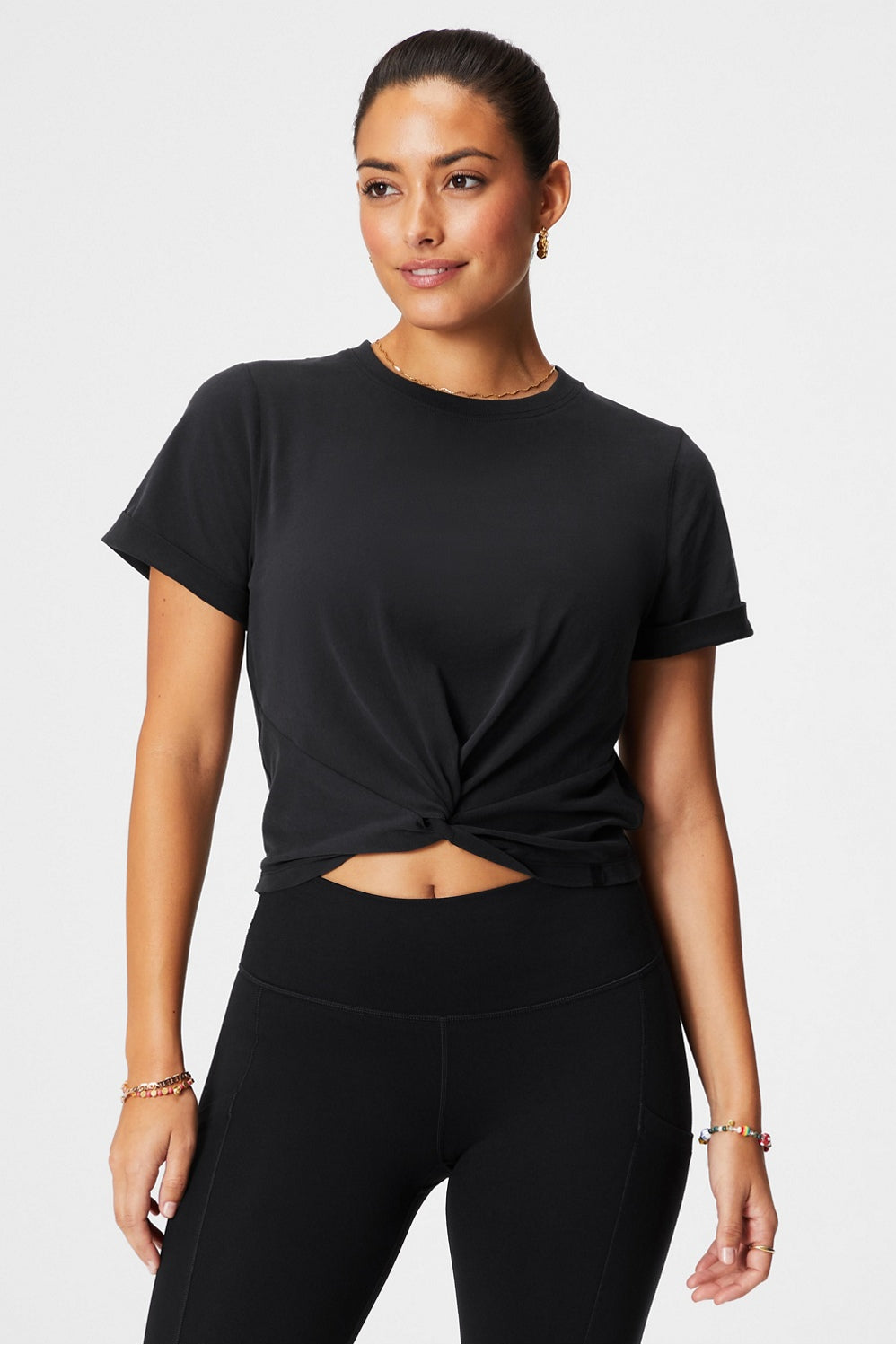 The classic cotton tee, with a twist. Elevate your everyday look in this soft, cotton top with a twisted front. Wear it over a sports bra to work out or with your favorite jeans.