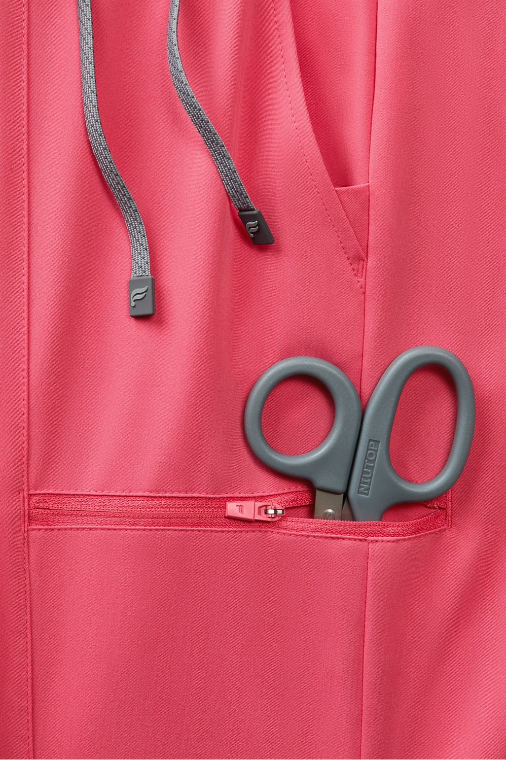 Made with superior stretch, durable water repellent tech, and a super-soft feel, this fabric is made to last & keep you comfortable through any shift. High-quality performance provides support and dependability, all while delivering a flattering finish.