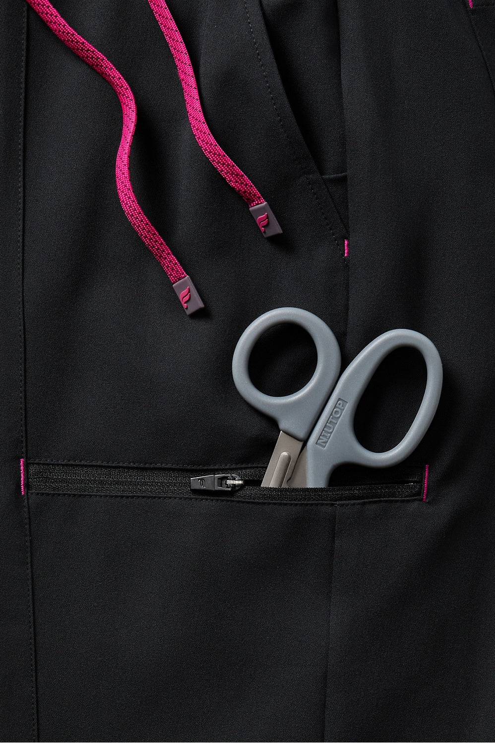 Designed for max comfort with all of your essential pockets in mind. Our Signature Stay-Put Waistband allows for a full range of motion, thanks to its elastic ribbing + adjustable drawcord security combo. These are the only scrub joggers you'll ever need. Fabric infused with anti-microbial tech.