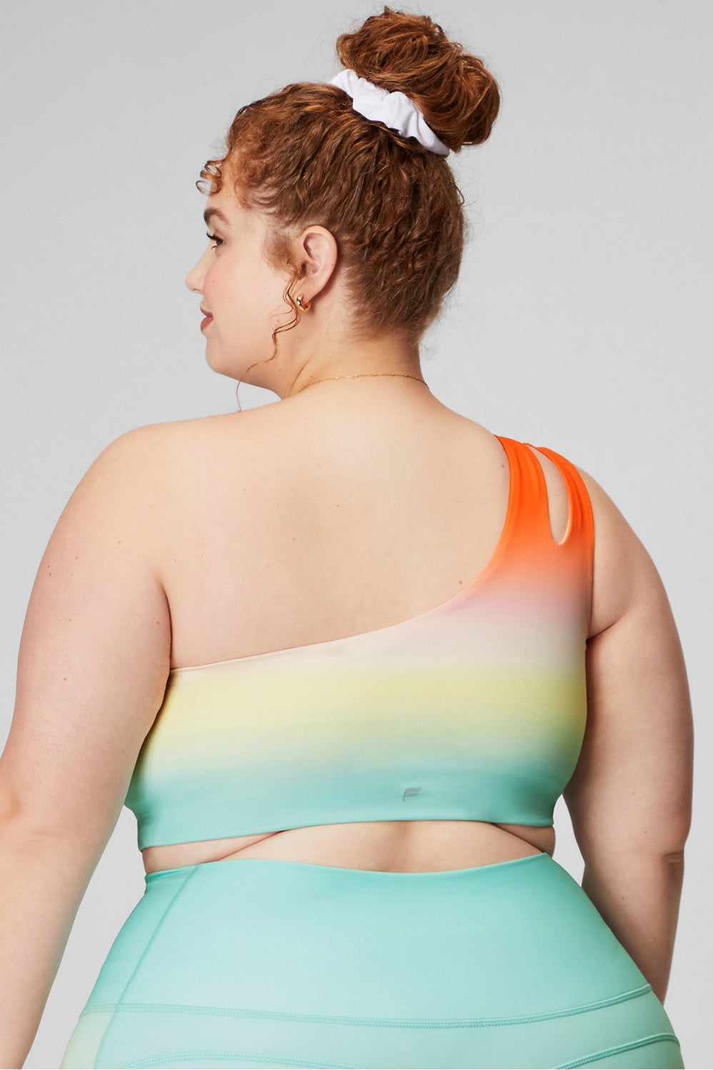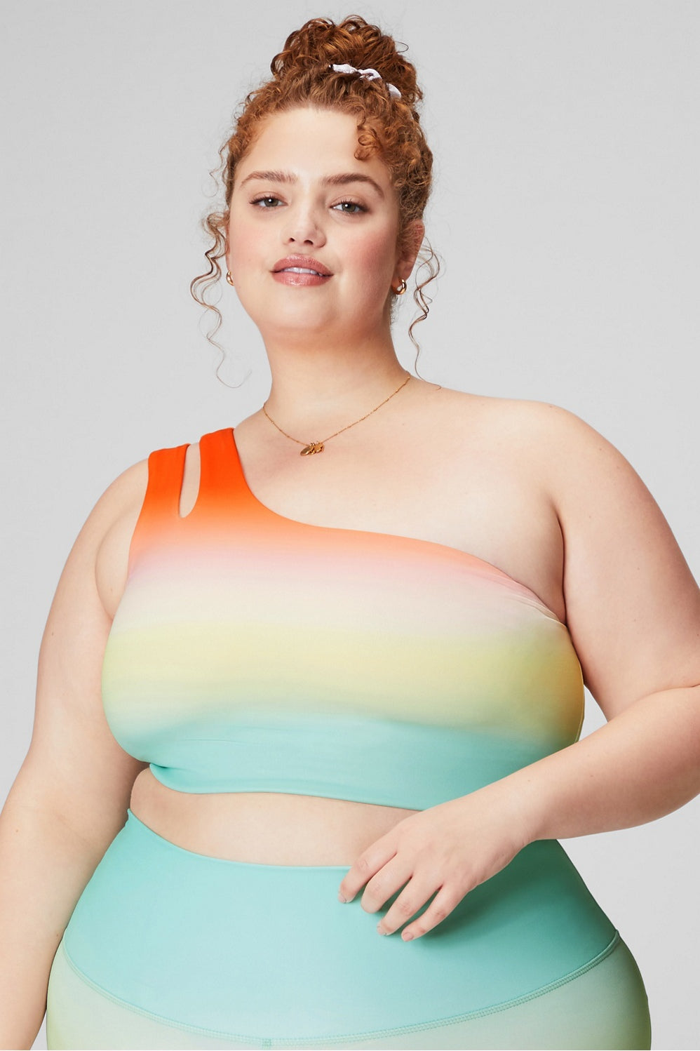 Make a style statement. This midi bra features double straps and an asymmetrical neckline. It's designed for performance but chic enough to wear out and about.