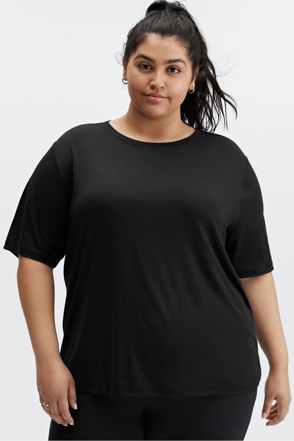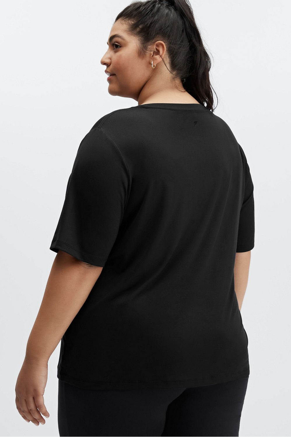 Your conscience will be at peace in our super-soft, oversized tee made from recycled fabrics. It'll wick away moisture without feeling form-fitting, too!