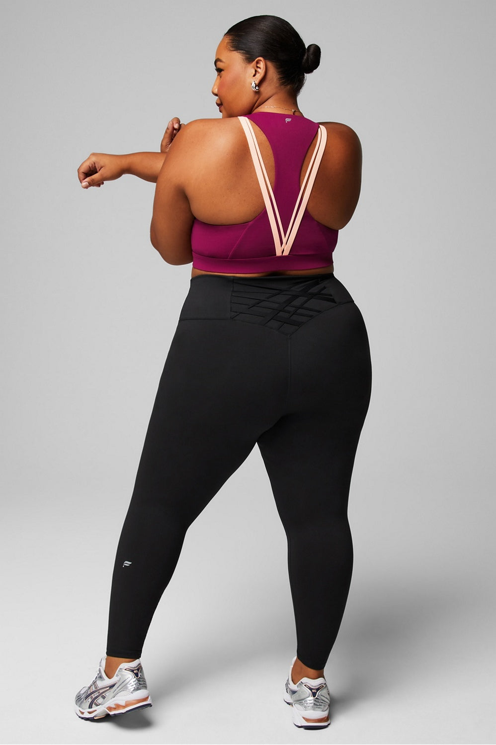 Standard sports bra from the front, major strap party from the back. Mix up your routine in our medium-support style with all the technical features your drills depend on.