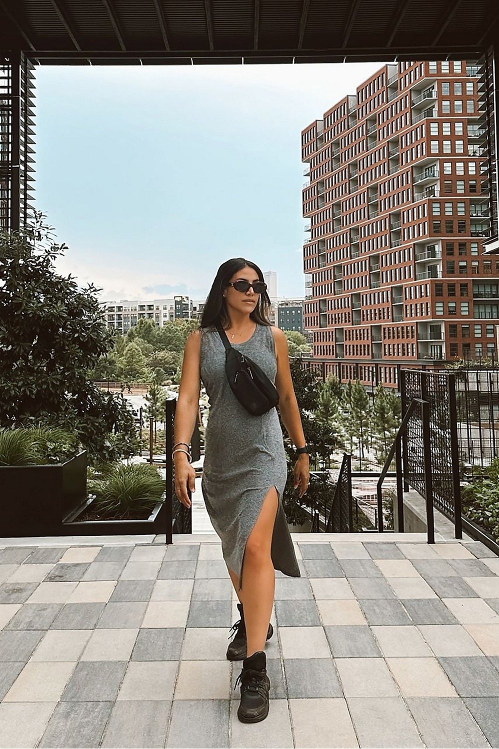For the girl on the go. This easy midi dress is crafted in our softest lifewear fabric ever, Cloud Jersey. You'll love the buttery feel, body-skimming silhouette, and slit detail for a flirty finish.