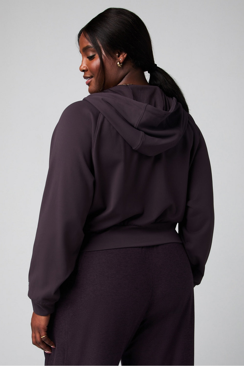 Warming up. Crafted in our Cold Weather fabric— with an updated perfect fit, warm brushed interior, and sleek, moisture-wicking exterior— this full-zip hoodie features a cropped silhouette and zip pockets for your essentials.