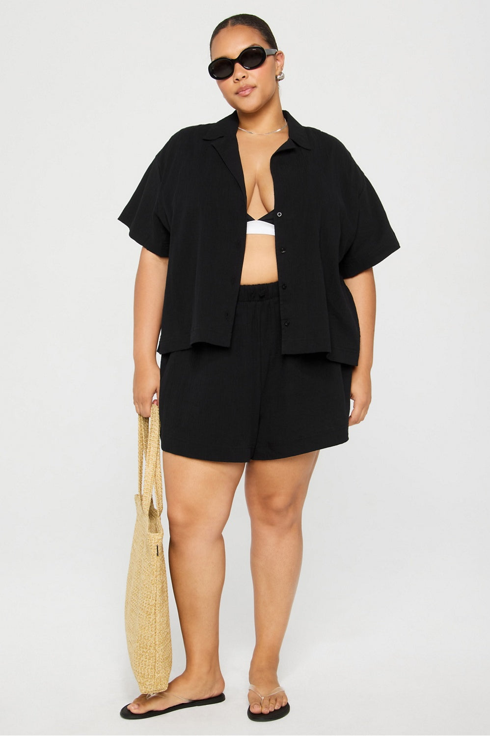 Whether you're vacay prepping or simply enjoying a day at the pool, you deserve to look and feel adorbs. This shirt effortlessly pulls your summer look together with a lightweight cotton crinkle fabrication and relaxed fit.