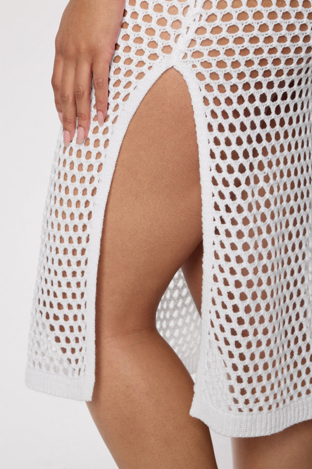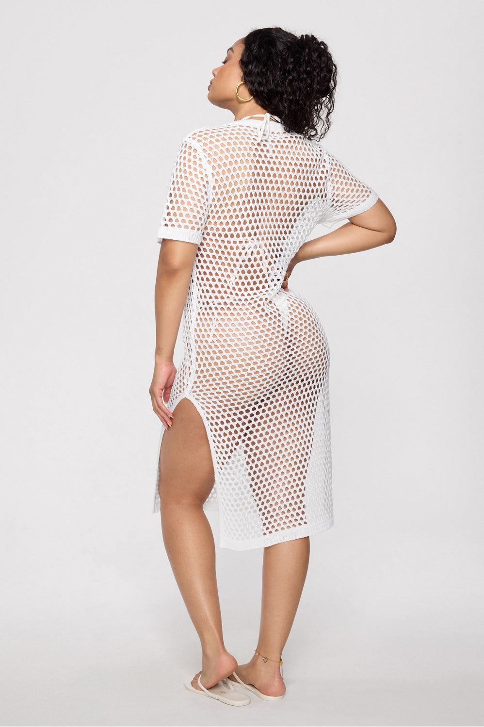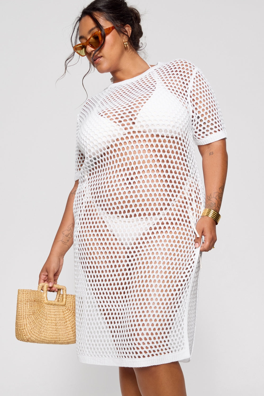 From sun-soaked shores to sunset strolls, this semi-sheer crochet midi dress is the ultimate layer-on-everything piece. With side slits for easy movement, ribbed hems, and a relaxed fit, it’s perfect over your bathing suit or favorite slip dress.