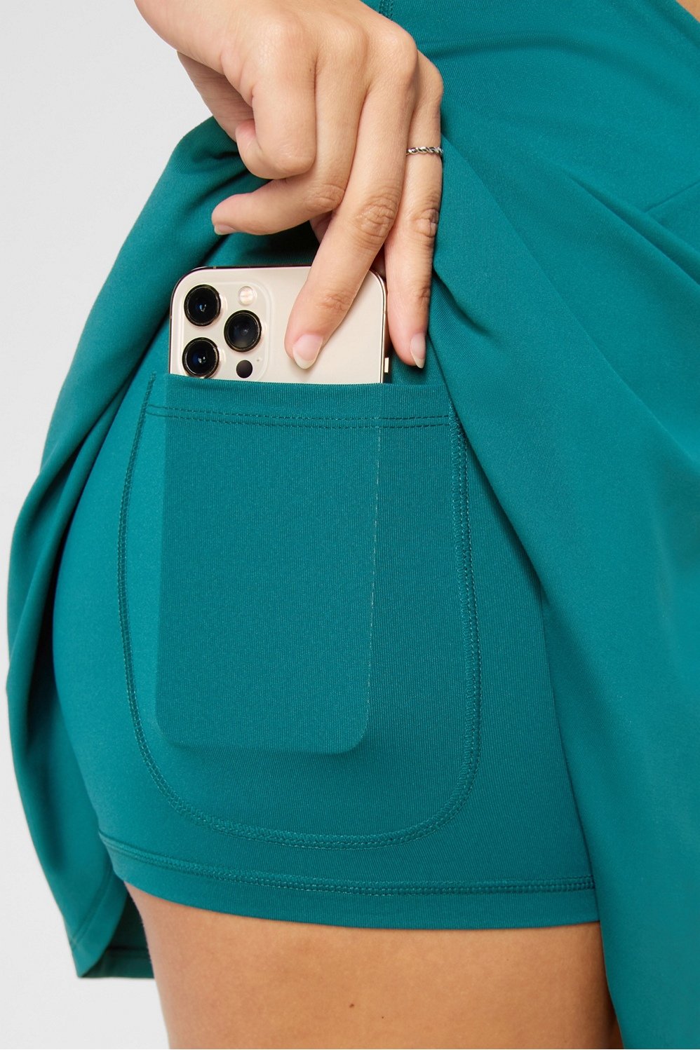Sporty meets flirty. This soft crossover-waistband skirt goes from tennis court to coffee dates with ease. You'll love the built-in shorts with side pockets to keep essentials secure. Skirt Length by size - XXS-XL: 13 1/2