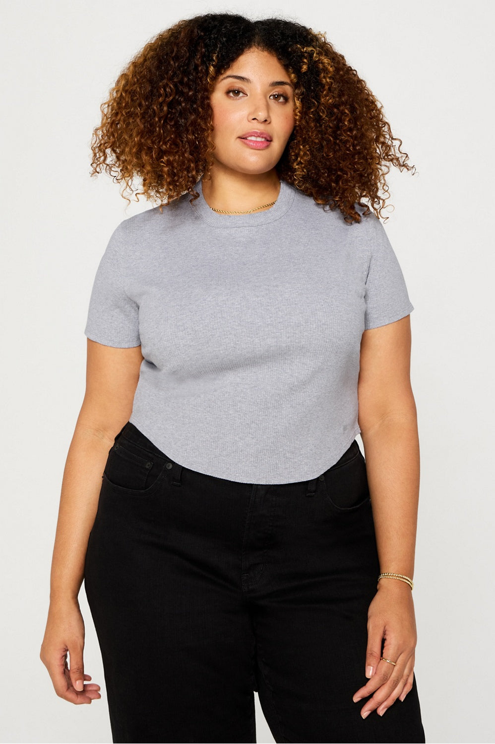 A classic baby tee, but make it fresh! This fitted top pairs perfectly with everything from shorts to denim, with its chic curved hem. The cotton rib fabric is ultra-breathable with a touch of stretch for all-day comfort.