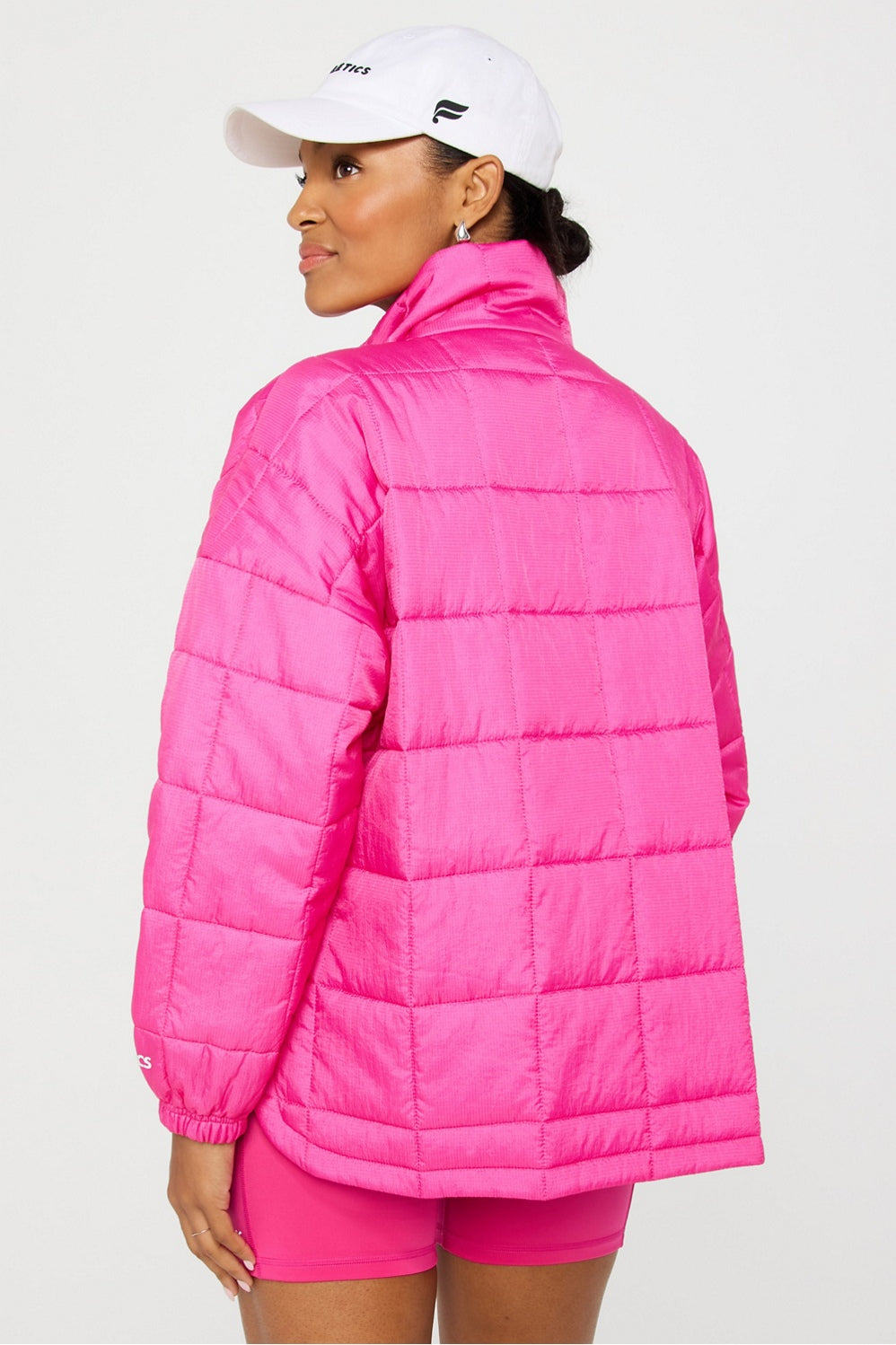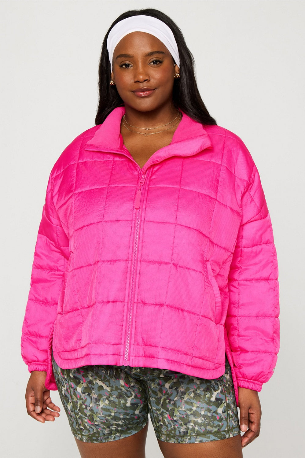 This soon-to-sell-out jacket is this season's staple. Super comfy & quilted, this dolman has a slouchy fit that's perfect for layering. With a zip-front closure, and scalloped hem, it's the ultimate throw-on-and-go style for casual, cool outfits.