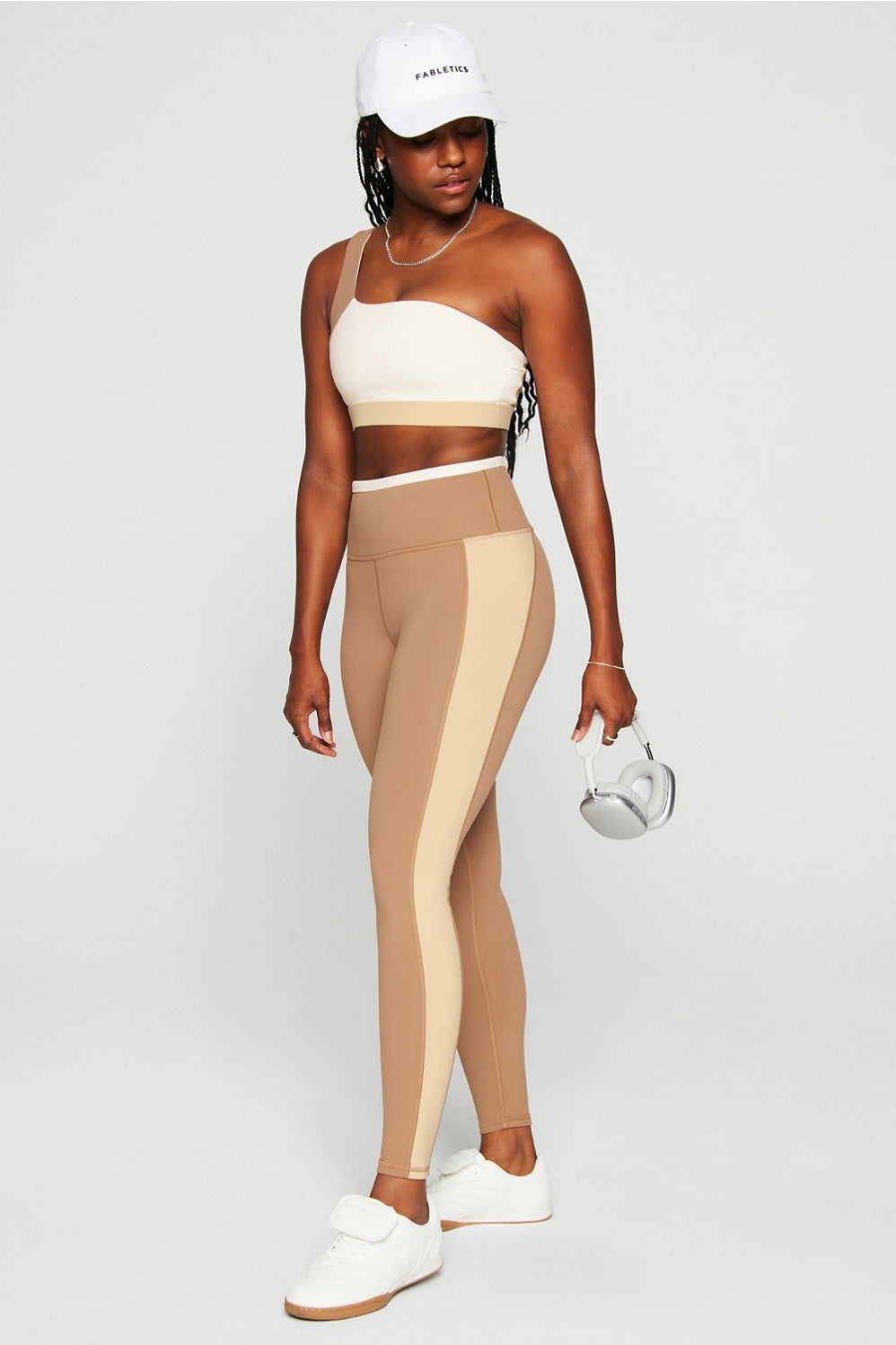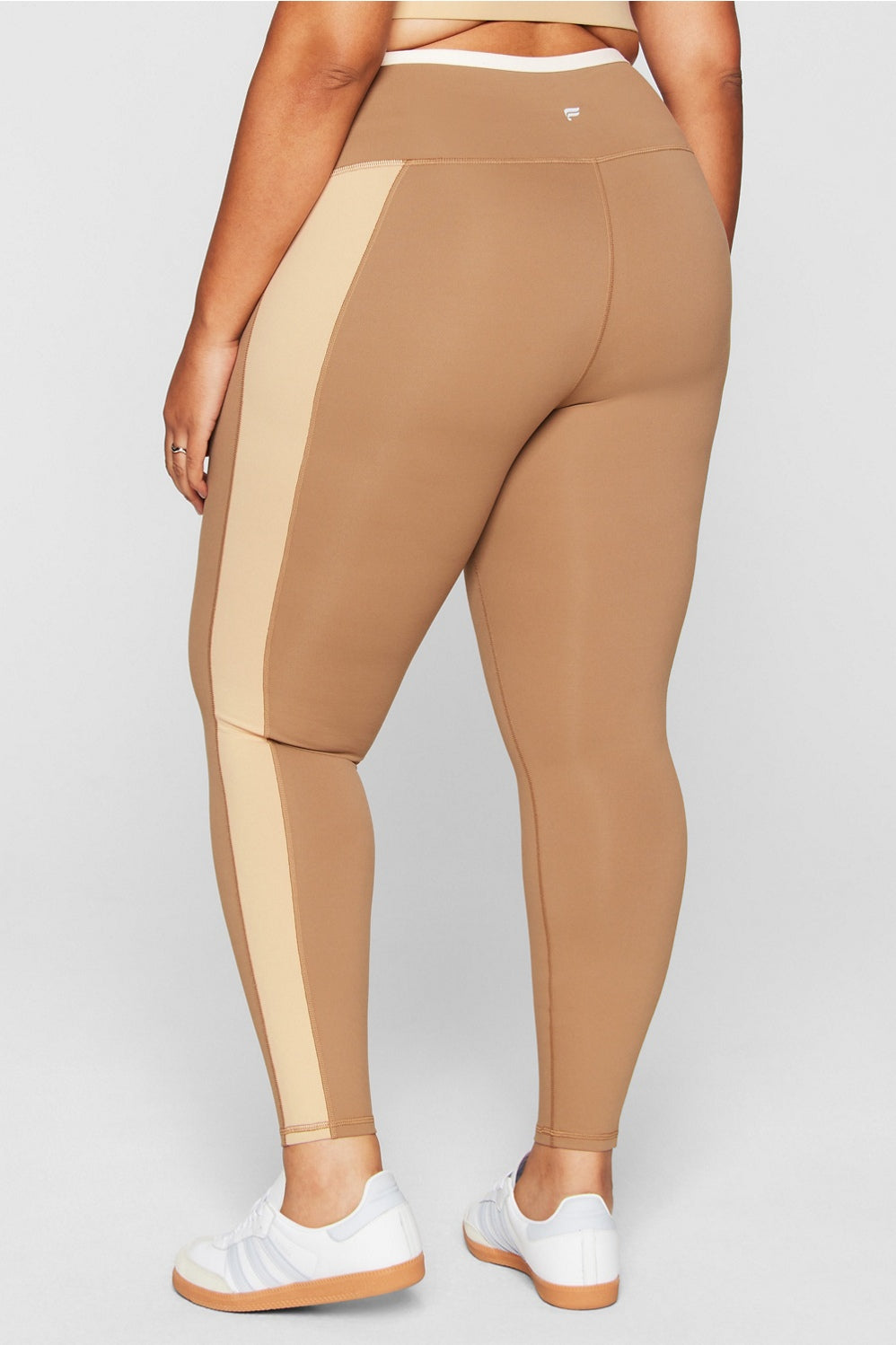 High rise and color-blocked for a unique touch & flattering finish. PowerHold® fabric and a power-mesh lined waistband deliver high compression and stable core support that stays put.