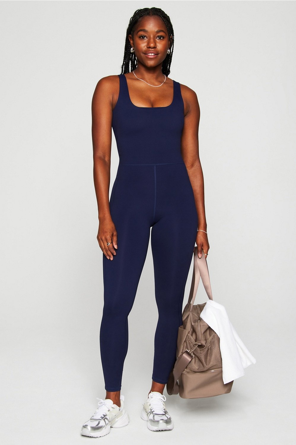 Define yourself. Freshly updated with flattering color-blocking that accentuates your curves, this jumpsuit is a one-stop wonder. The PowerHold® stretch offers maximum compression, smoothing and shaping to provide the type of support you can't live without.