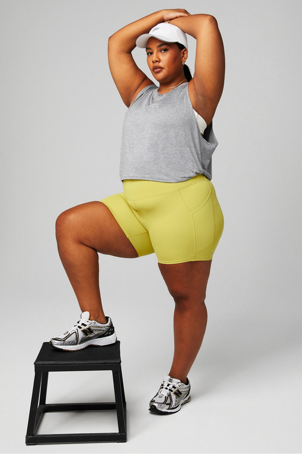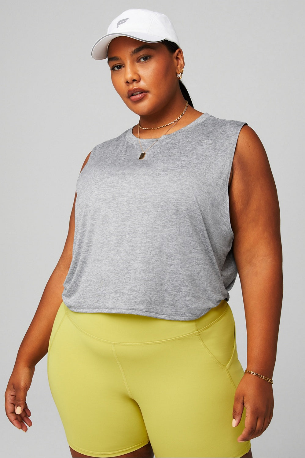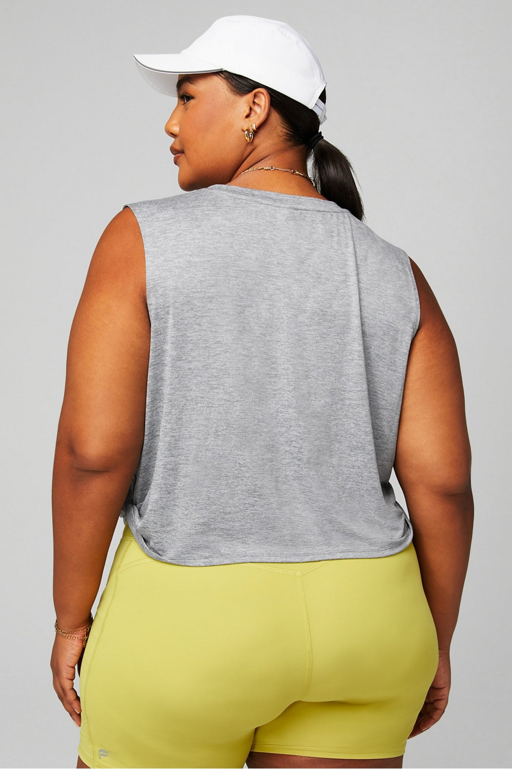 Work out in style with this ultra-lightweight cropped tank. You'll love the peek-a-boo armholes and how the side twists accentuate your waist. Plus, the moisture-wicking, breathable Dry Flex fabric ensures you stay cool.