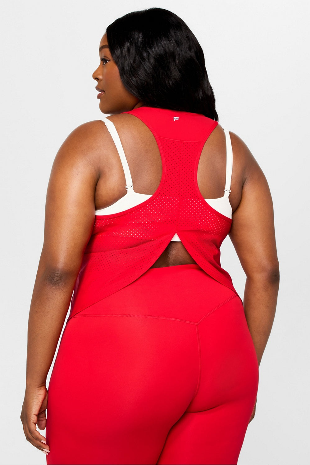 Hot weather? No prob. This lightweight tank is designed for your highest-sweat workouts, with moisture-wicking tech, breathable perforation, and 360 reflectivity. It offers a semi-cropped length and boxy fit for all-day airflow.