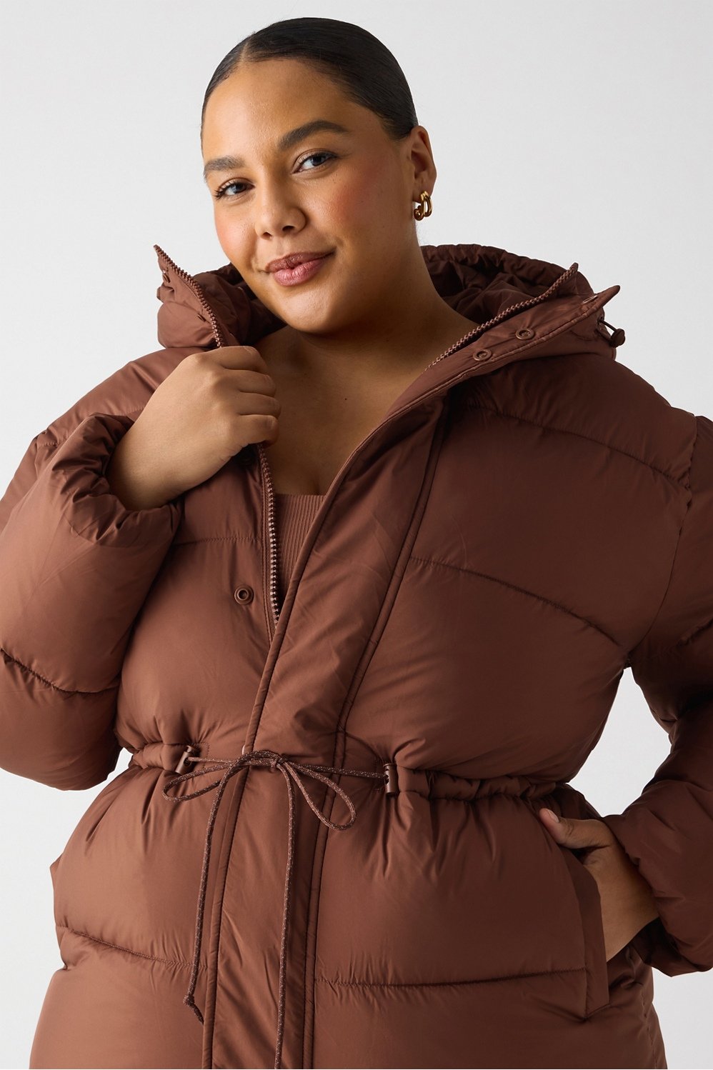 Only around ONCE per year — this is the puffer you've been waiting for! With a sleek silhouette, it's designed to keep you stylish all season long. The waist-cinch detail, side and pockets, and adjustable hood take coziness to a new level. Don't wait.