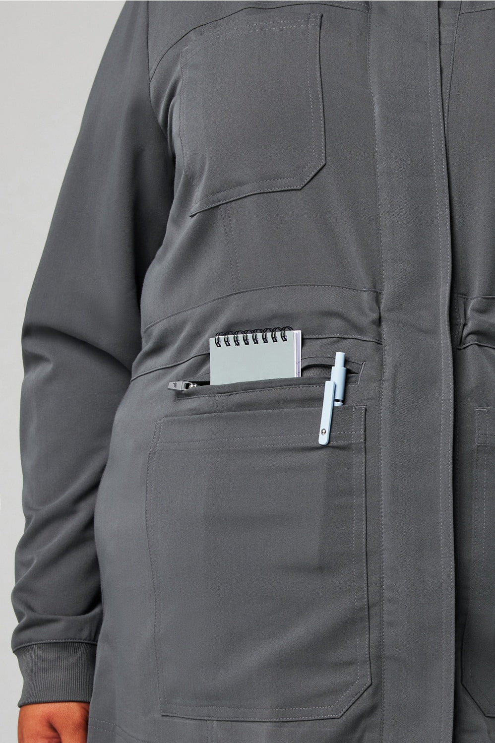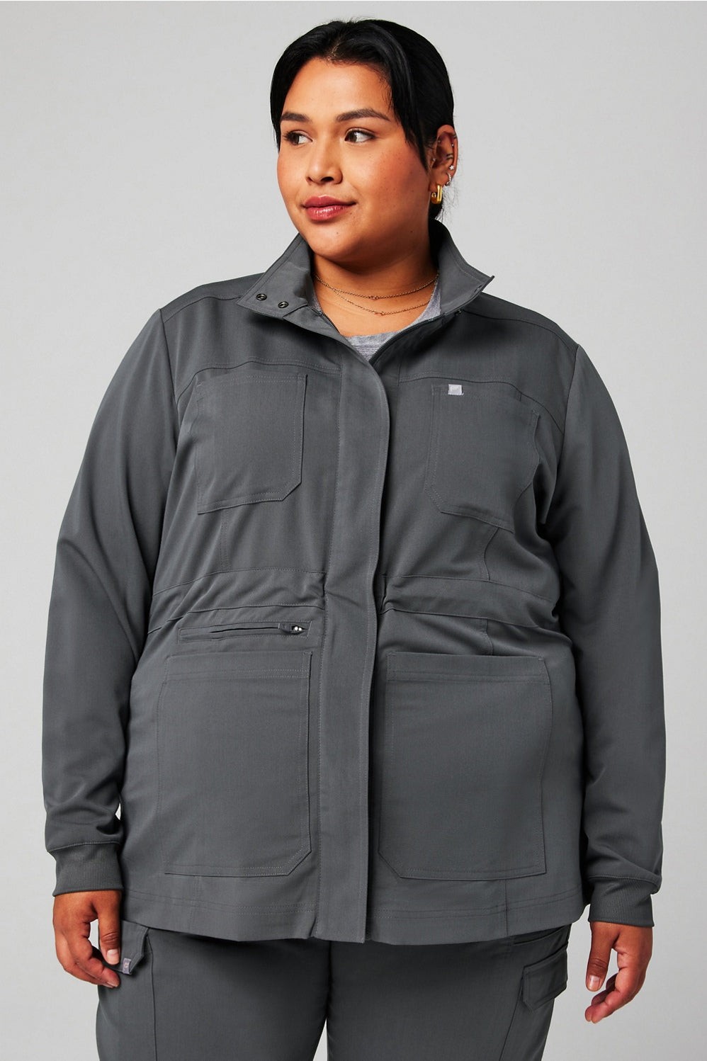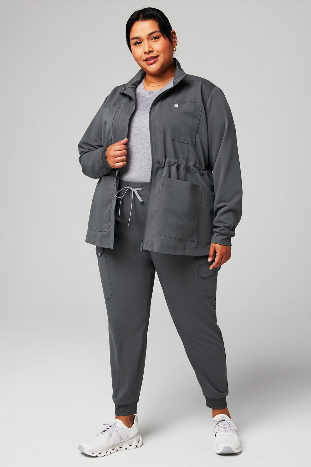 Inspired by utilitywear, our cargo jacket features a stylish, relaxed fit and an adjustable waist for a customizable look. Plus, it has a bungee badge loop and 5 pockets to carry your precious cargo.