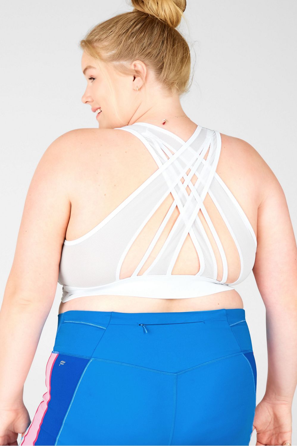 This medium-impact sports bra gives cool a whole new meaning. Just take a look at its breathable mesh overlay and super strappy back. And if you're wondering where the coverage comes from, this bra boasts removable cups and a sturdy bottom band.