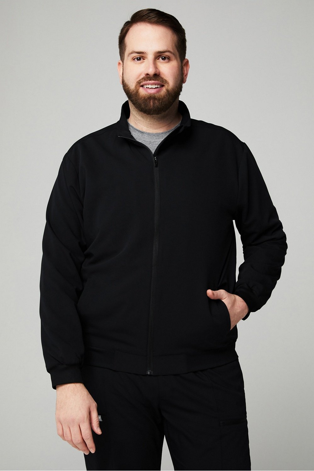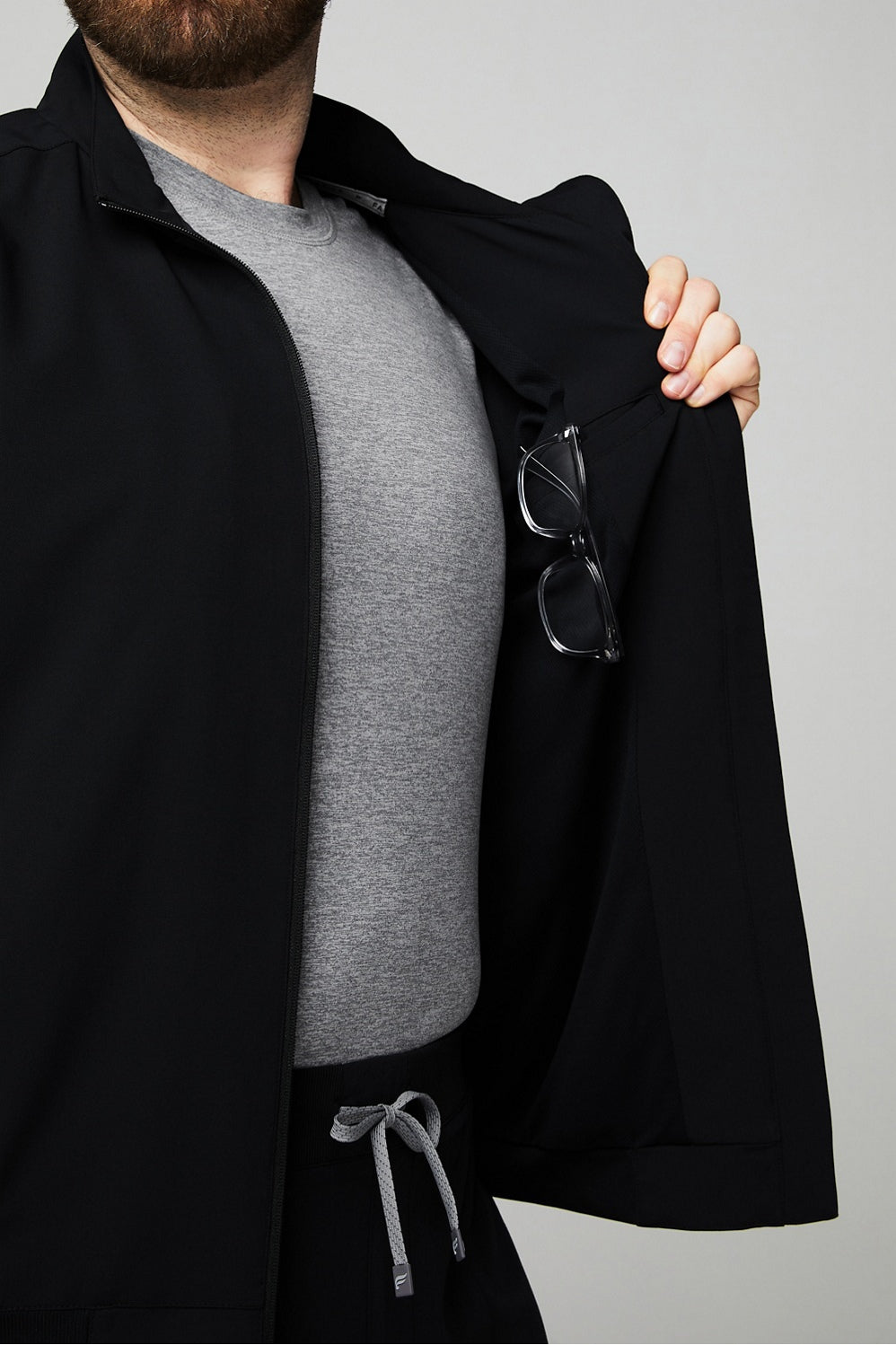 Add an extra layer with this contemporary scrub jacket that prioritizes both comfort and style, equipped with ample and secured storage. Fabric infused with anti-microbial tech.