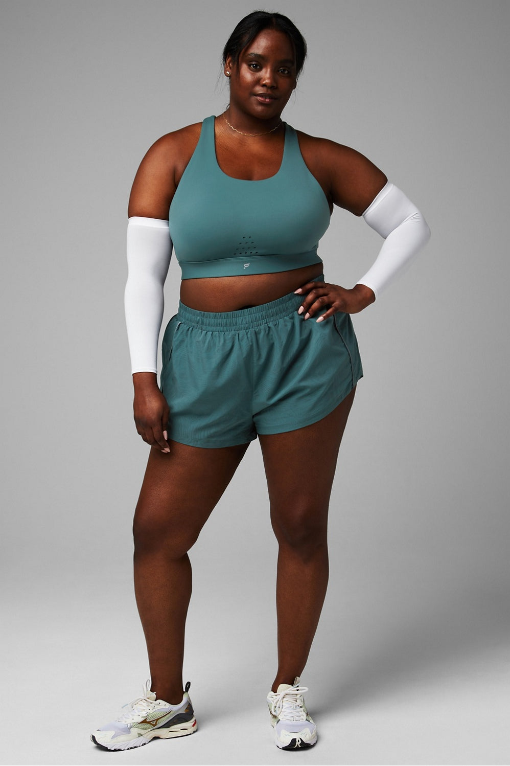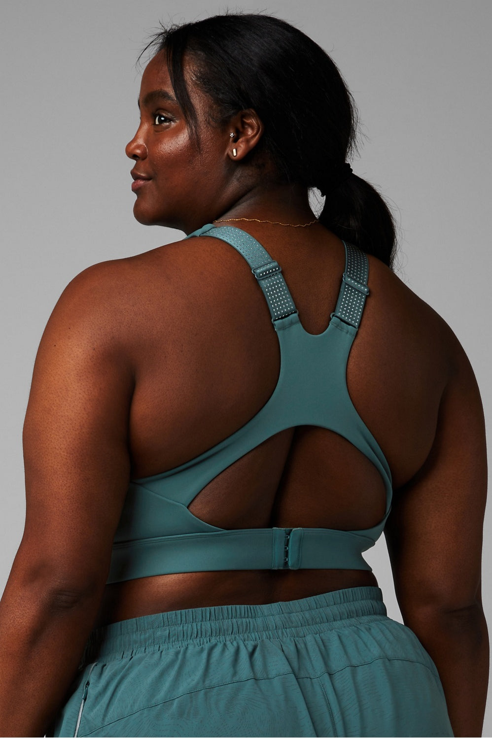 Right on track. Built for your longest, toughest runs, this high-impact bra features unmatched support, adjustable racerback, built-in molded cups, and reflective details for nighttime.