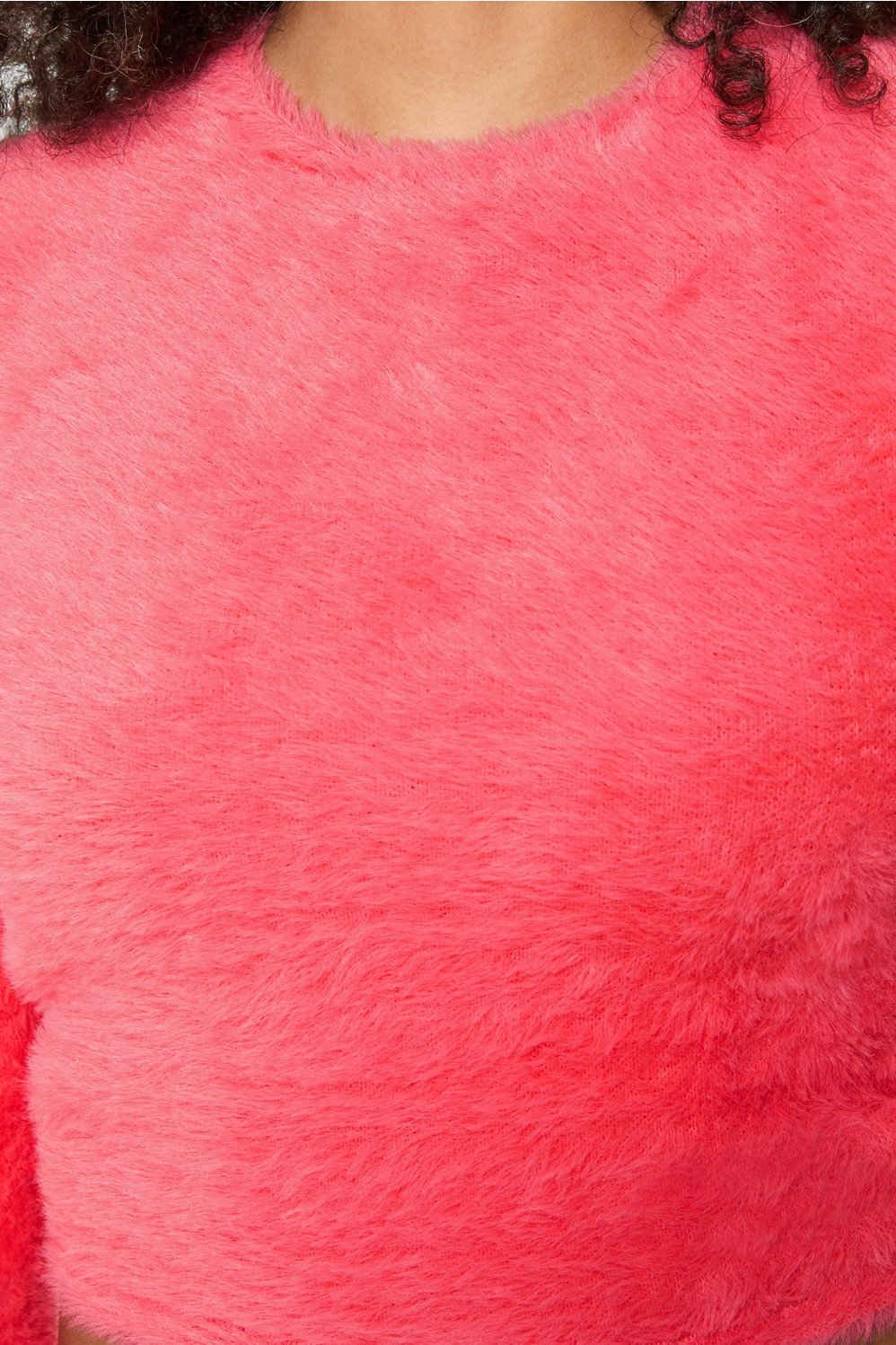 Sweet and sexy—just like you. This lightweight long sleeve is crafted with luxuriously fuzzy, faux mohair fabric. Featuring a classic crew neck with a flattering cropped fit. Make it a match with our Fuzz Me Lounge Short.