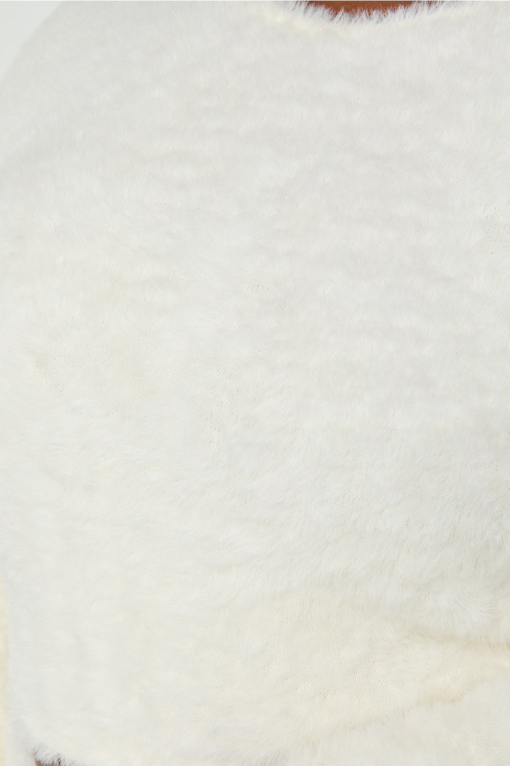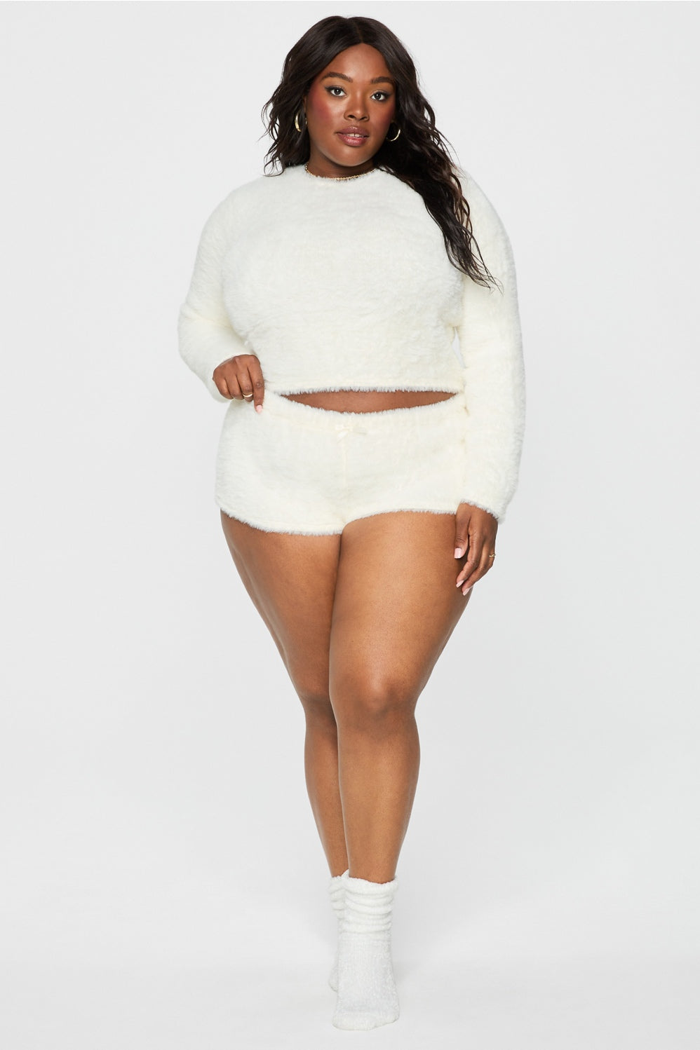 Sweet and sexy—just like you. This lightweight long sleeve is crafted with luxuriously fuzzy, faux mohair fabric. Featuring a classic crew neck with a flattering cropped fit. Make it a match with our Fuzz Me Lounge Short
