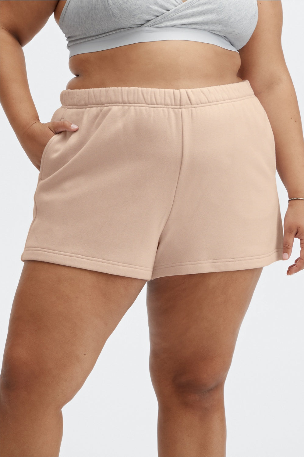 High school gym style is cool again thanks to our structured fleece short, crafted from recycled materials and finished with an encased elastic waistband and pockets.