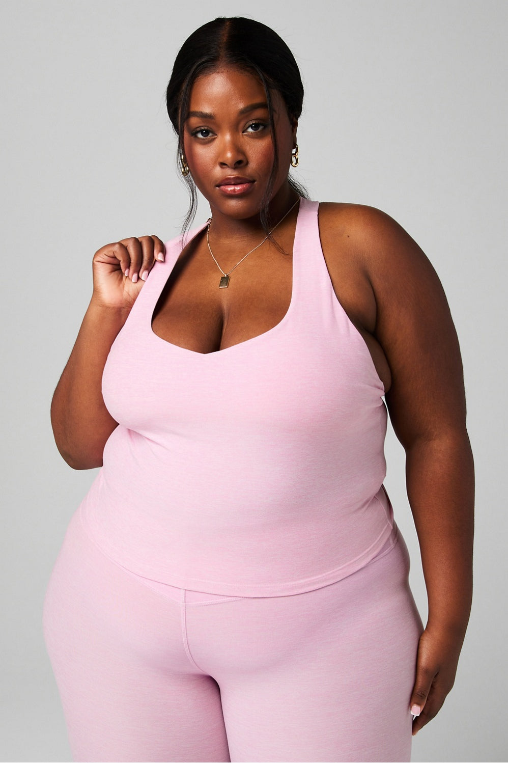 Move, bend, stretch. Designed for studio and low-impact workouts, this built-in bra tank features removable cups and a cropped silhouette. The ultra-soft HeatherFlex fabric offers a warm brushed feel with medium-light compression.