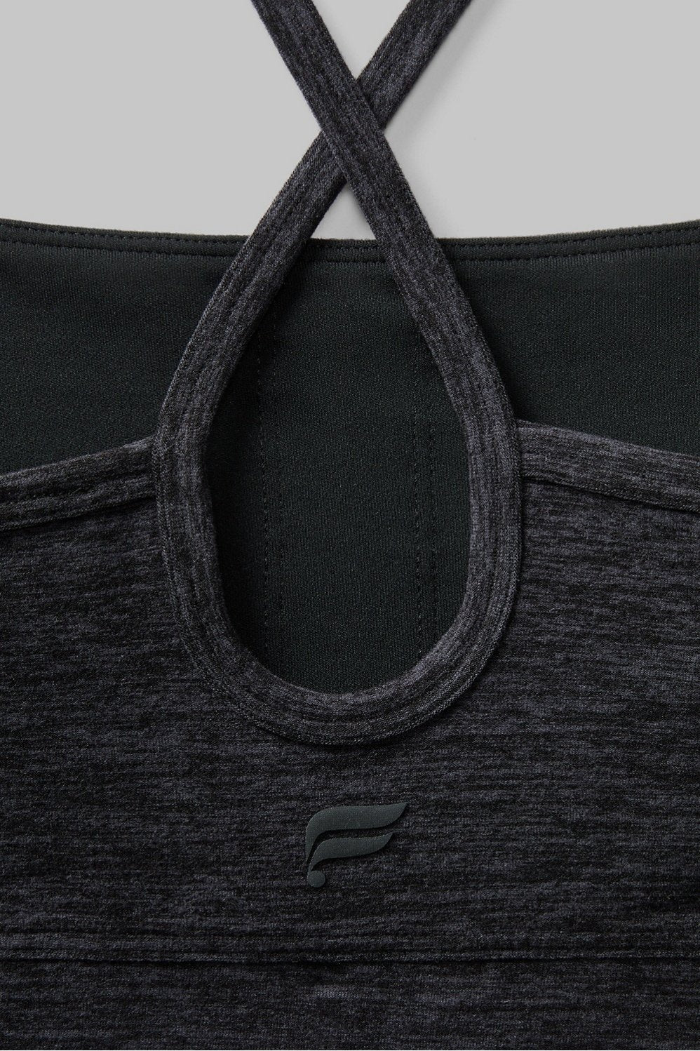 Find your flow. Designed for studio and low-impact workouts, this strappy bra features removable cups and a back keyhole for extra breathability. The ultra-soft HeatherFlex fabric offers a warm brushed feel with medium-light compression.