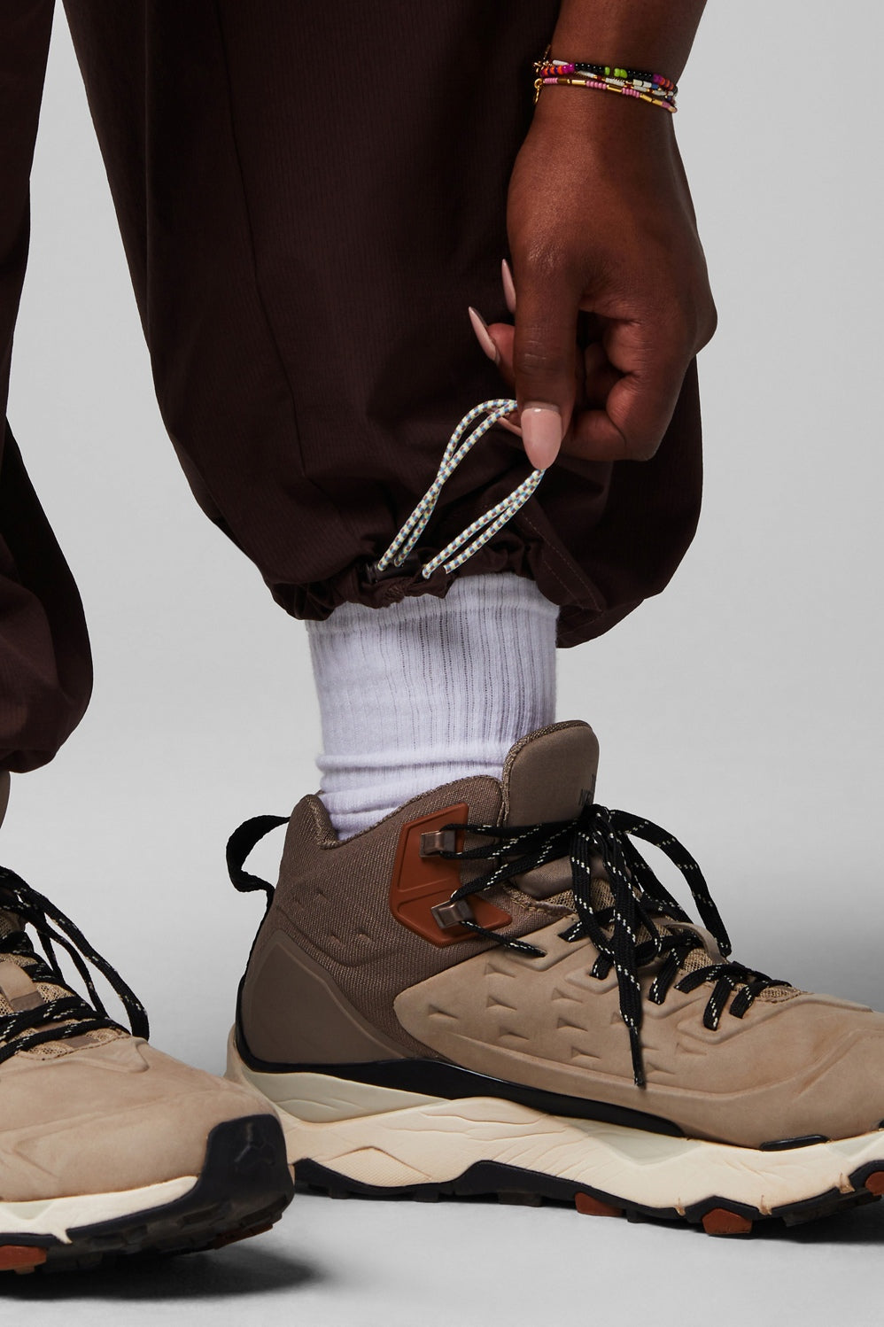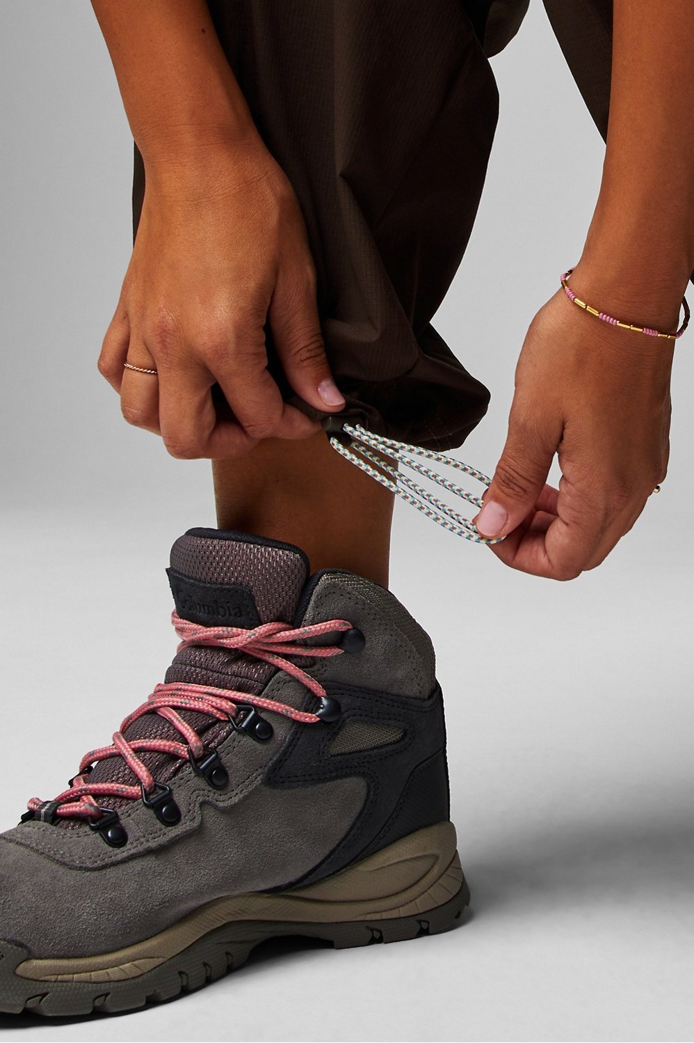 Hit the trails in this lightweight pant, built with water-repellant fabric and fun, hike-inspired details. Store you essentials in the front and back zip pockets, and adjust each pair for your height with cinchable legs.