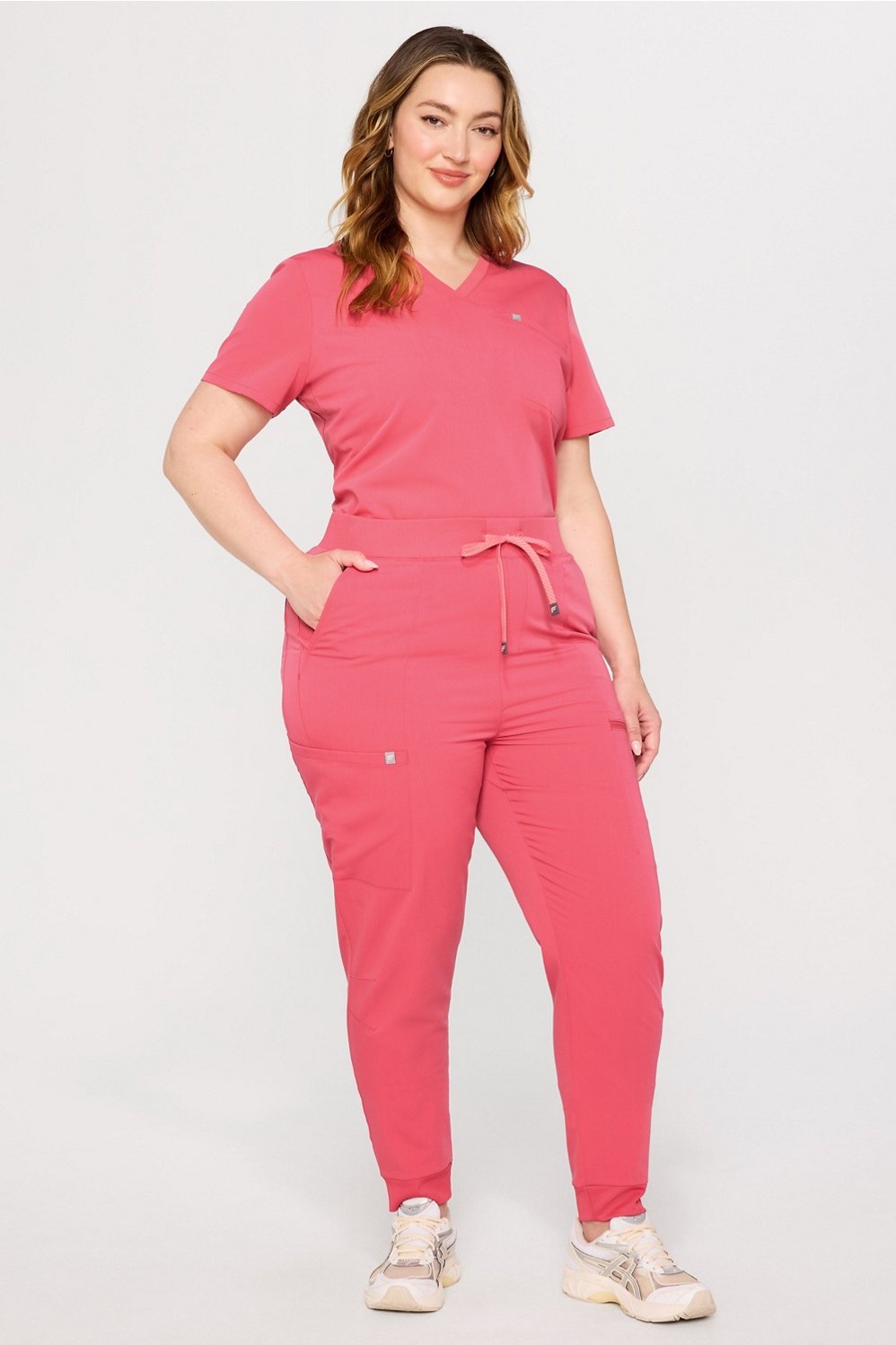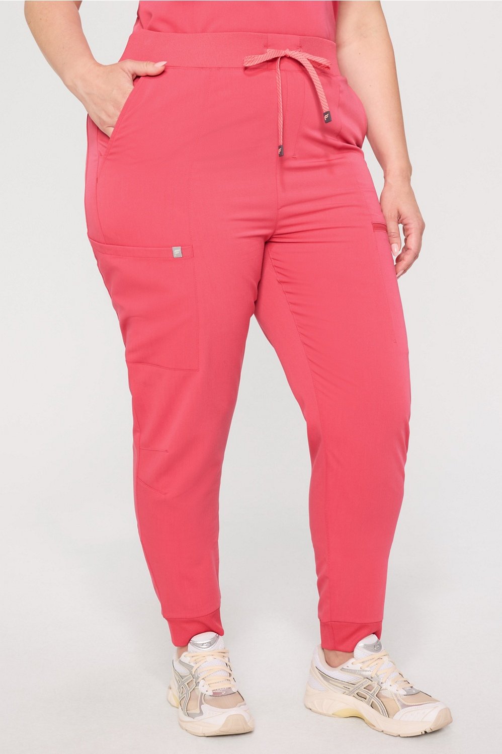 Our best-selling comfy joggers, now with a high-rise fit and additional back pocket. Our Signature Stay-Put Waistband allows for a full range of motion, thanks to its elastic ribbing + adjustable drawcord. Meet your soon-to-be favorite scrub joggers.