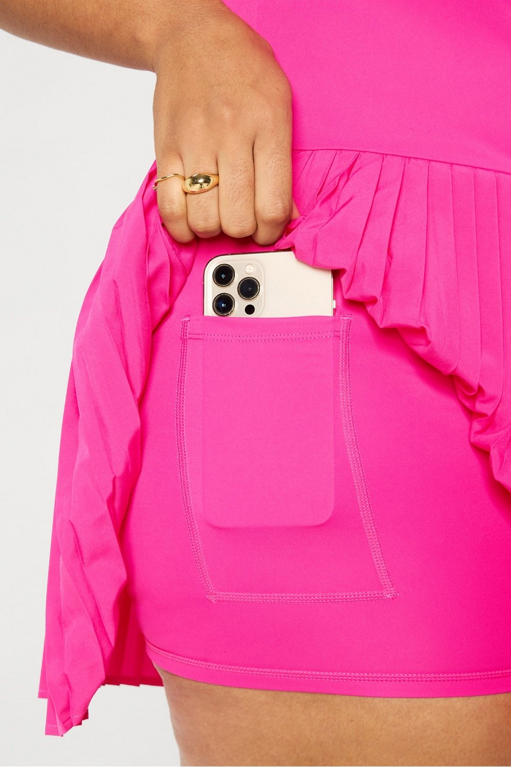 Low impact, high style. This pleated dress is your go-to for everyday wear. You'll love how the built-in bra with removable cups and the inner short (with pocket!) make it as functional as it is cute. Dress Length by size - XXS-XL: 30 3/4" XXL/1X-4X: 33 1/4"
