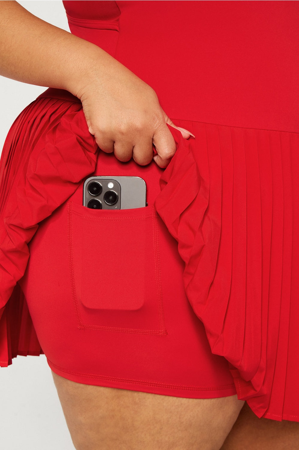 Low impact, high style. This pleated dress is your go-to for everyday wear. You'll love how the built-in bra with removable cups and the inner short (with pocket!) make it as functional as it is cute. Dress Length by size - XXS-XL: 29 1/4