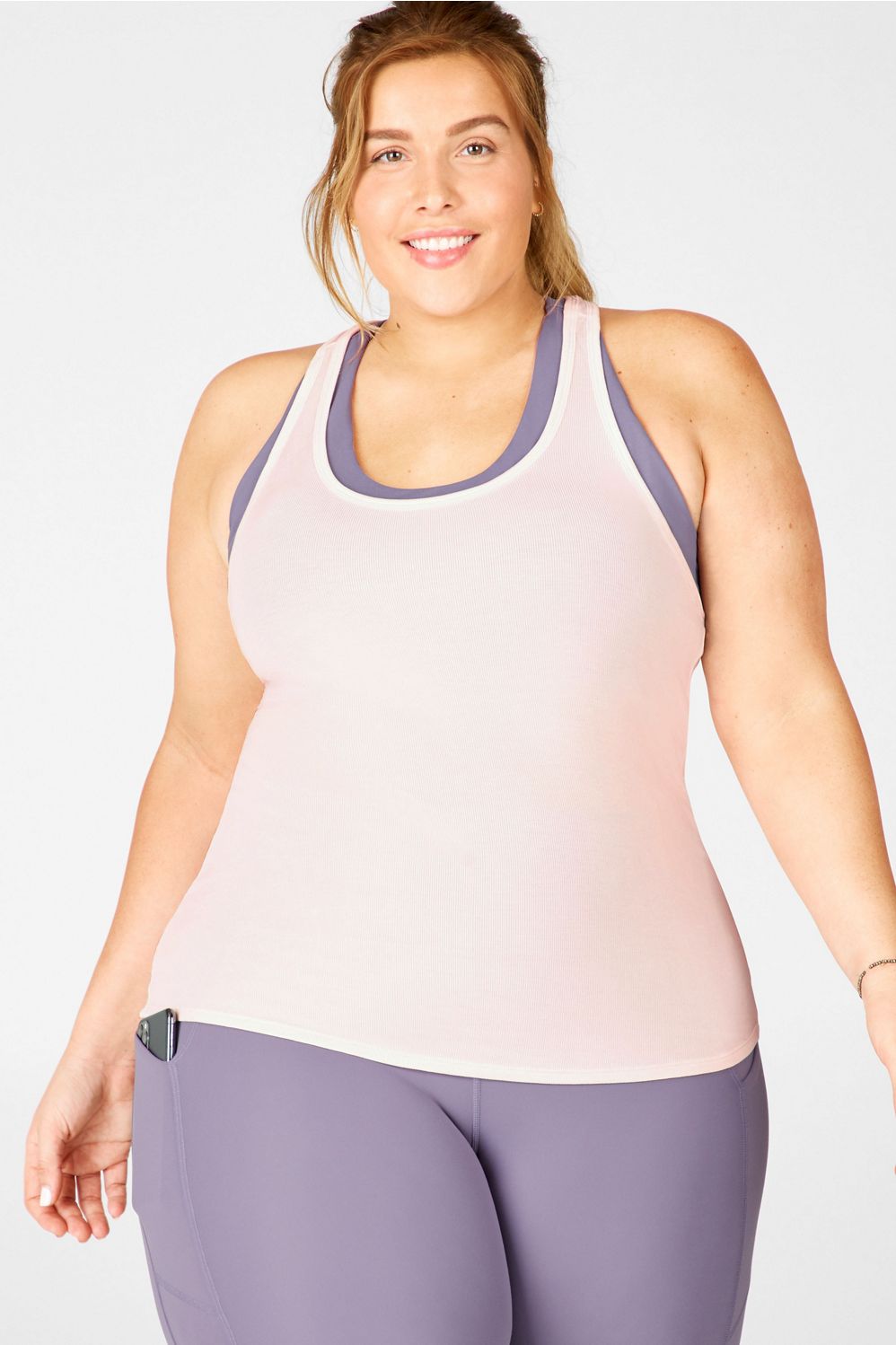 Our softest tank ever has arrived! It comes in a racerback silhouette that allows for full range of movement with cute, ribbed details, too.