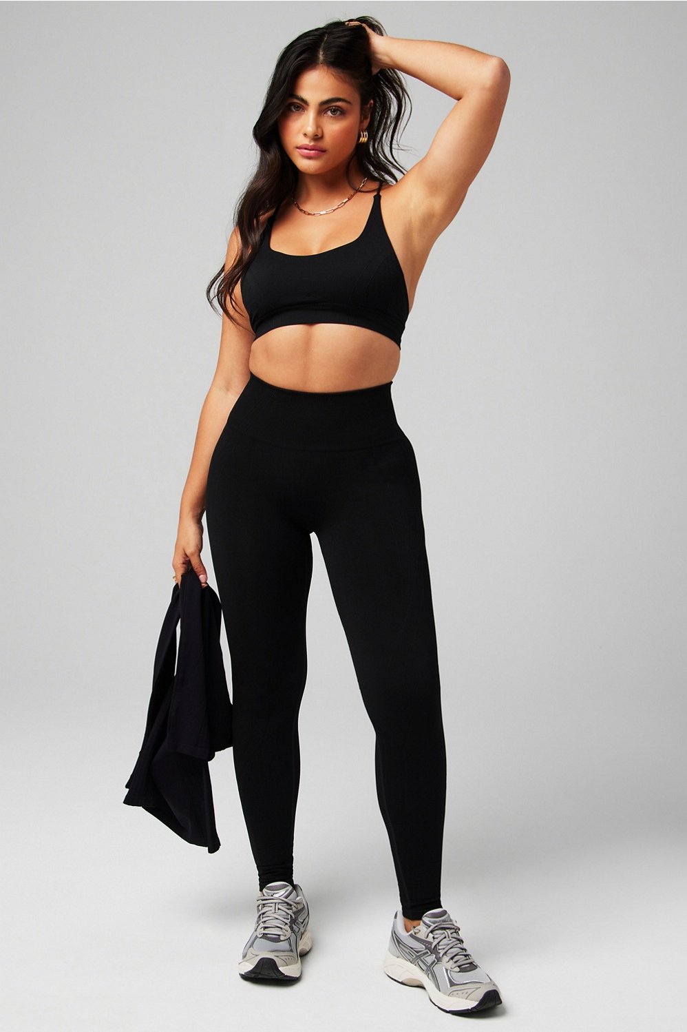 From pilates to yoga, this scoop neck strappy bra is designed with an open back and barely-there straps. The Seamless fabric is engineered to sculpt and highlight your form, no matter how you move.