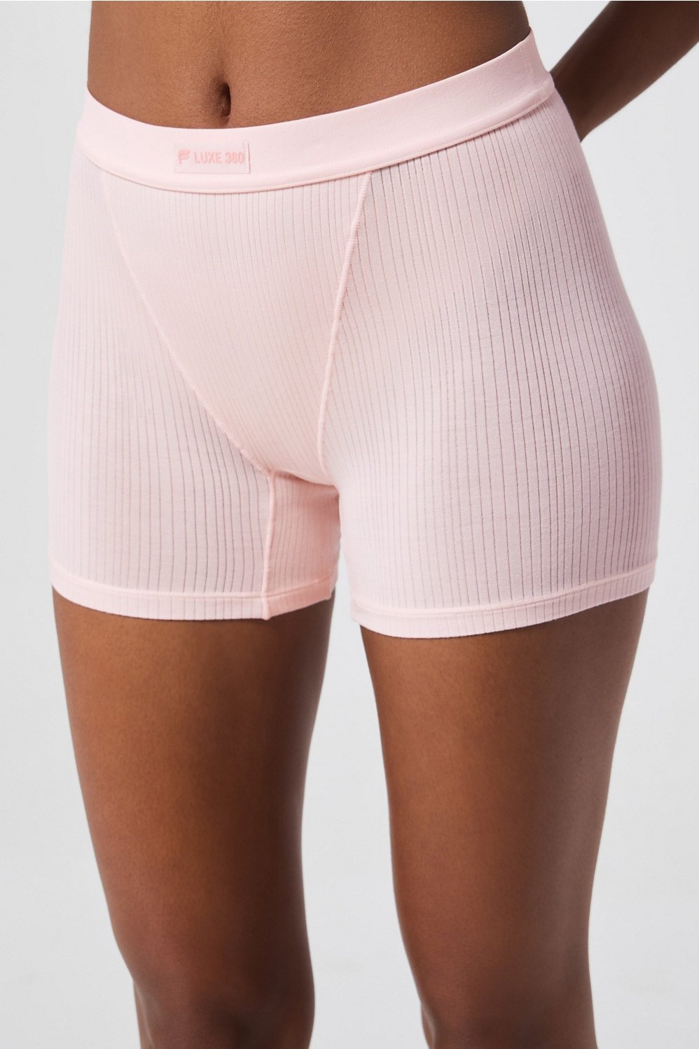 Our Luxe360 rib short is the perfect mix of flirty and sporty. It features a boxer-inspired cut and an elasticated waistline that sits just right. The barely-there feel is breathable, silky, and smooth against your curves. Romantic and whisper light, it's perfect for layering— and so comfy you'll want to live in it.