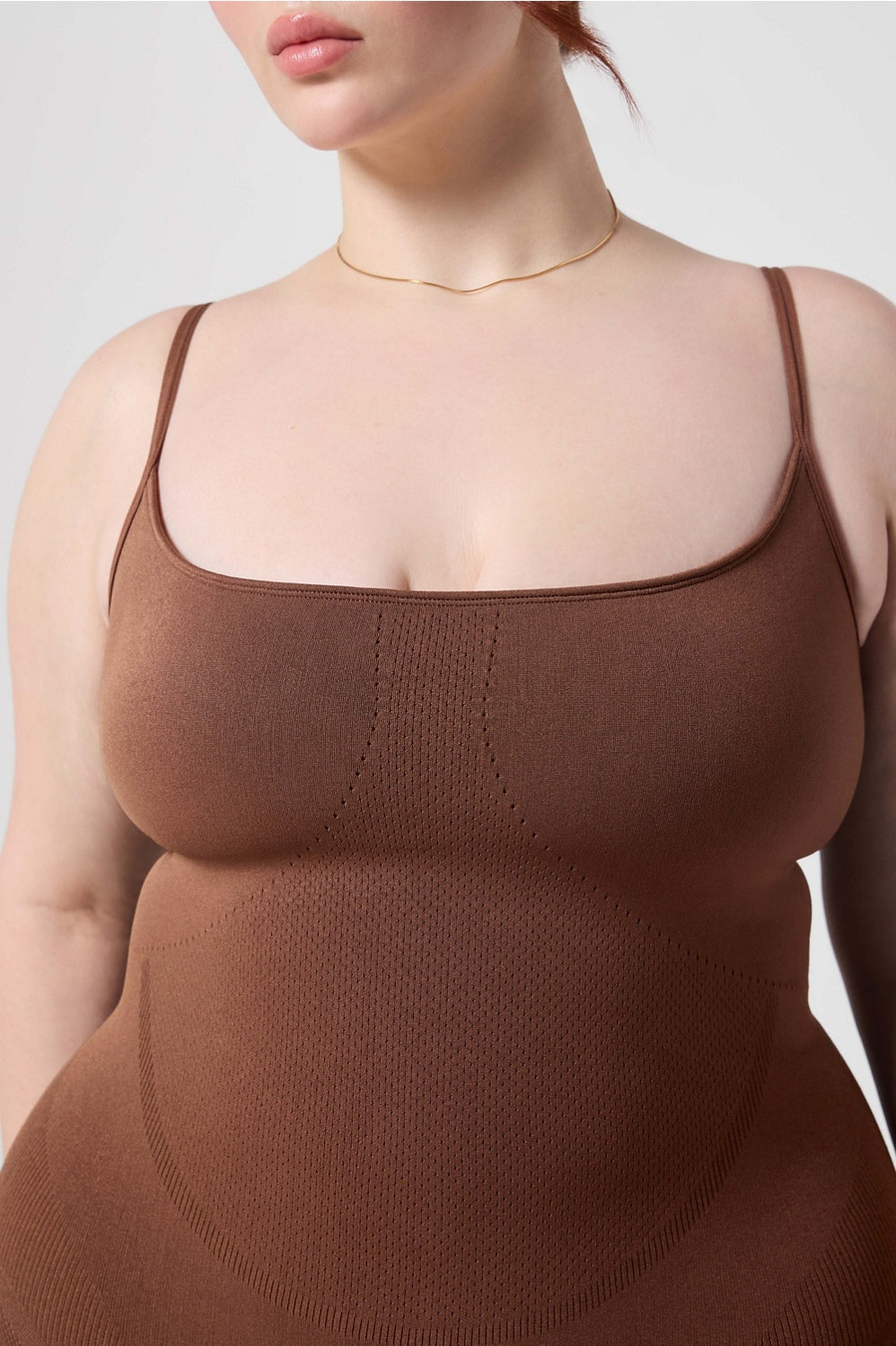 Meet your new favorite base layer. The Luxe360 SculptKnit® Jumpsuit is sheer in all the right places with curve-hugging support that flatters every inch. It's lingerie-inspired, body-contouring with an open strappy back, and made to indulge.
