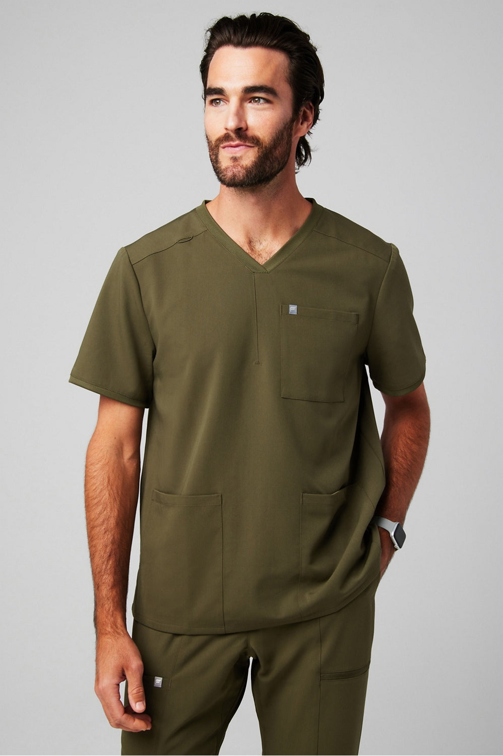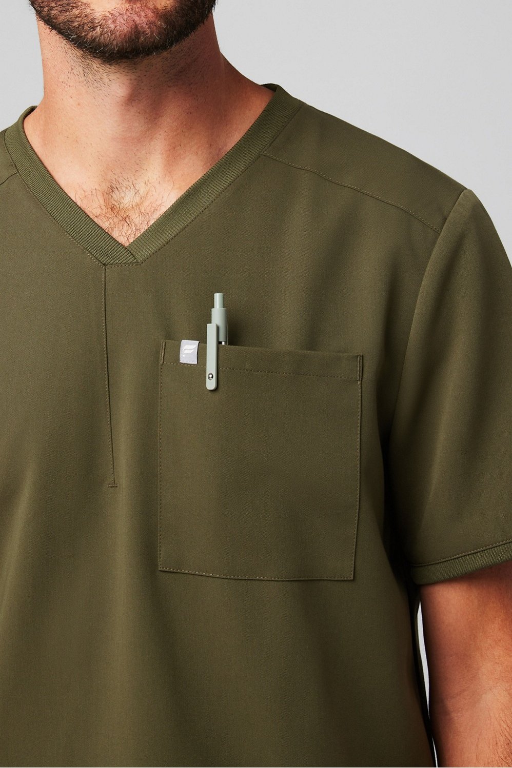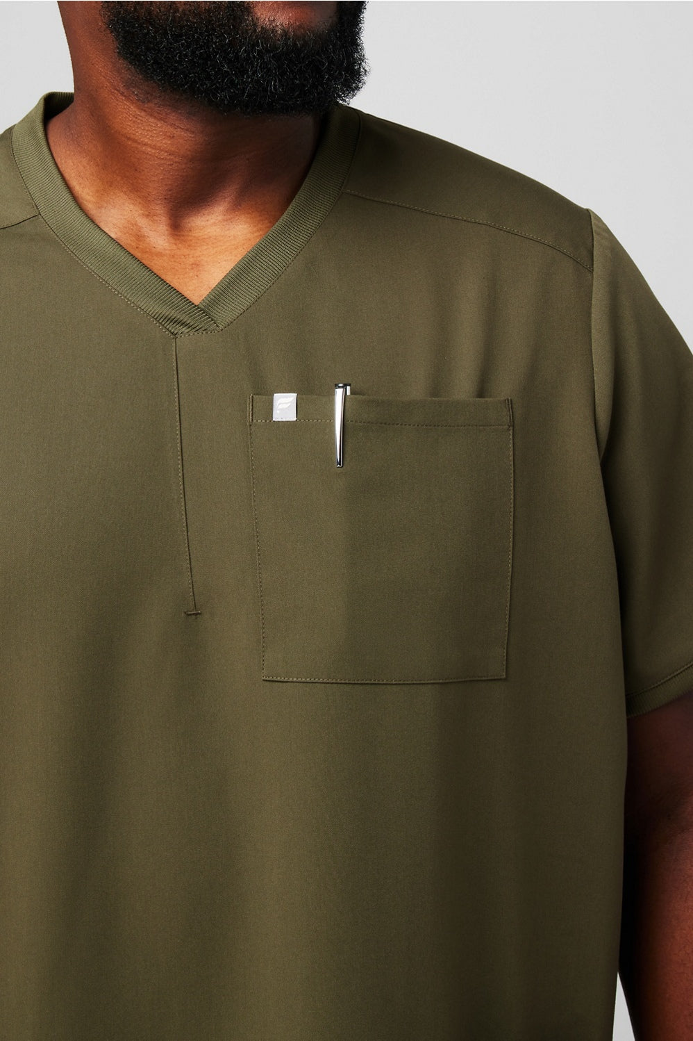 A functional update on our classic silhouette. Your new go-to scrub top has a relaxed fit with four pockets and a bungee badge clip. Perfectly engineered for 12-hour shifts and beyond.