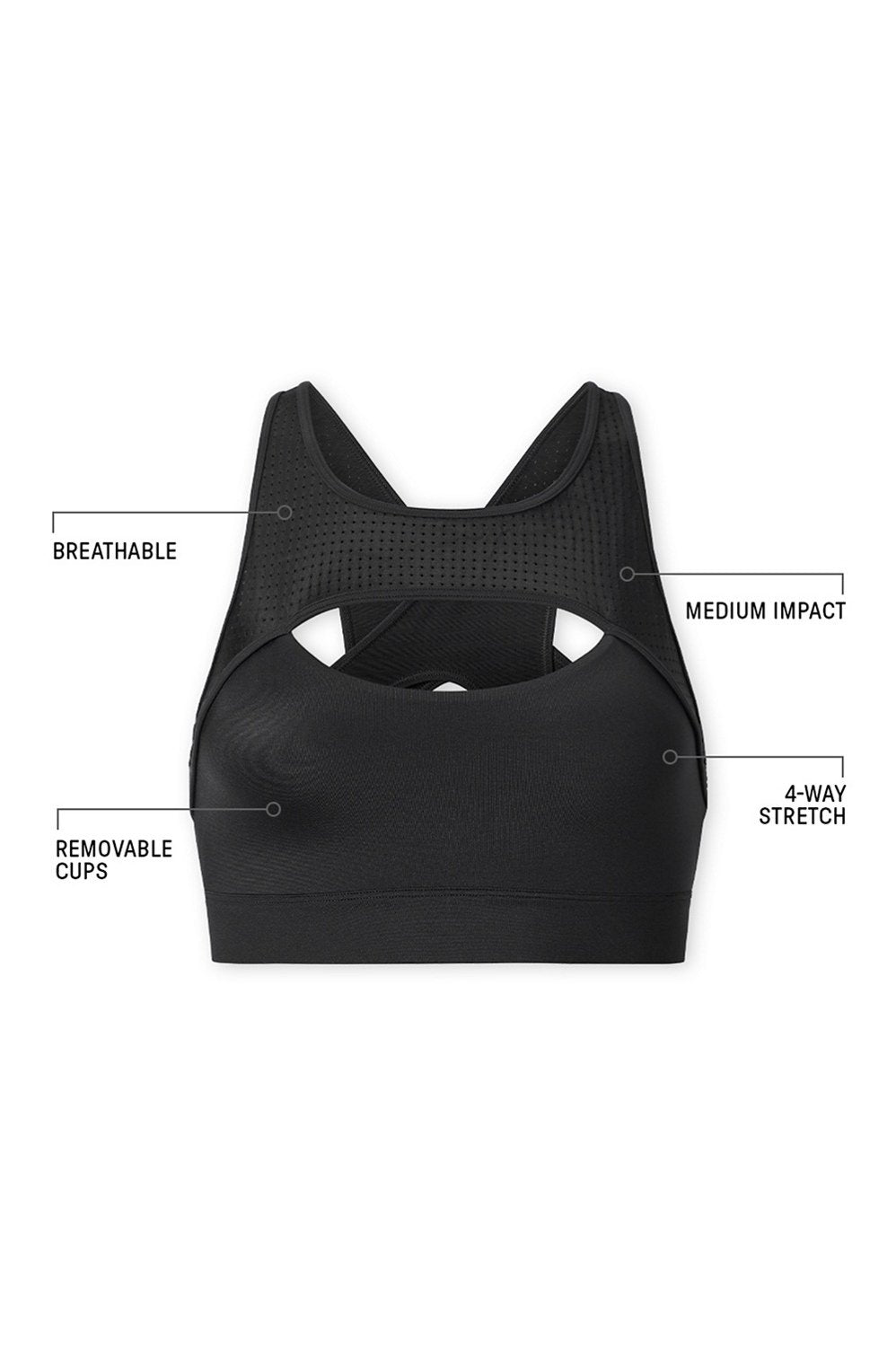 Engineered for max breathability. This medium-impact bra is designed with perforated panels and compressive fabric that keeps you both cool and supported, no matter the workout. Plus, you can adjust the fit for your lifestyle with removable cups.