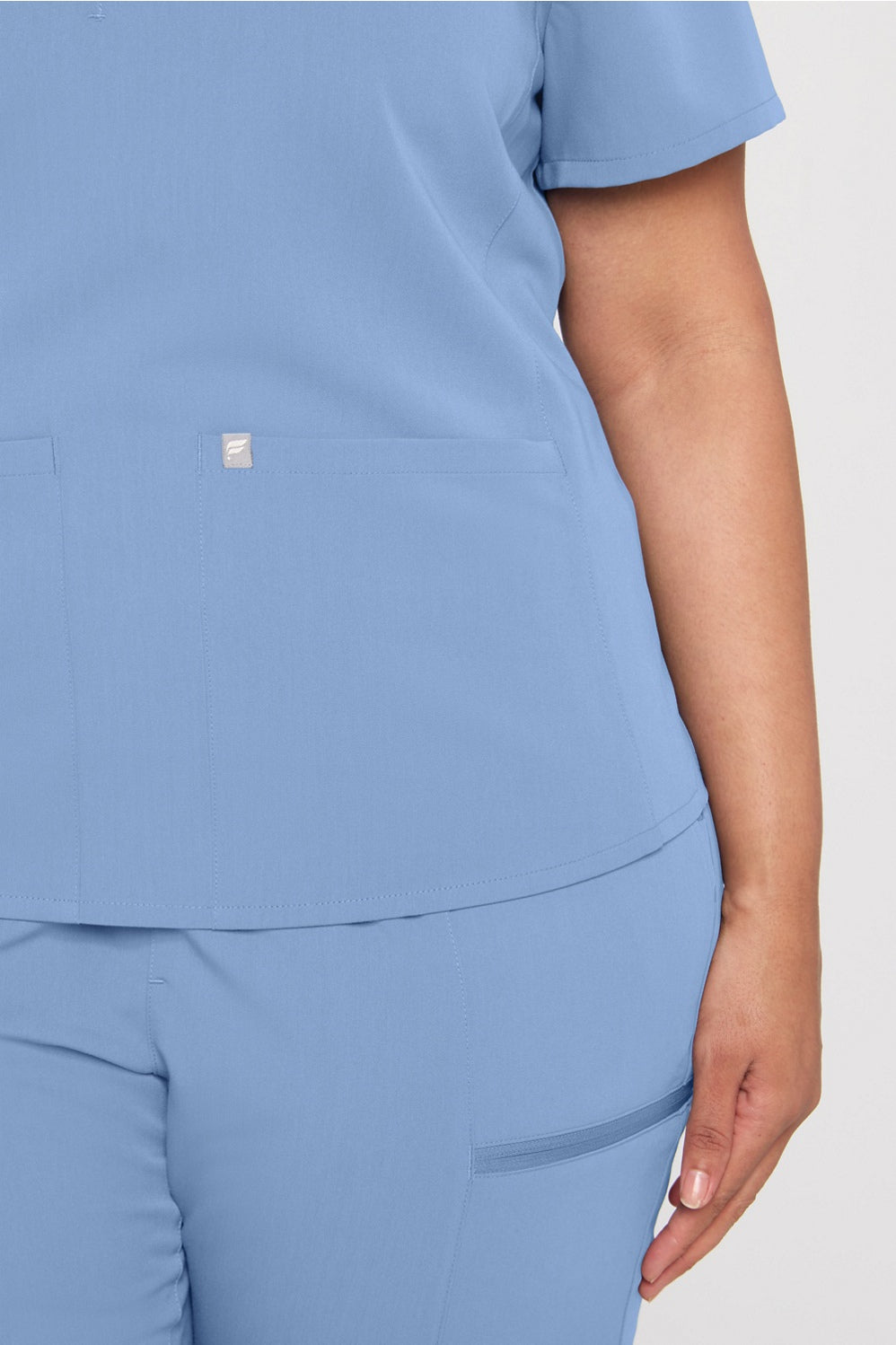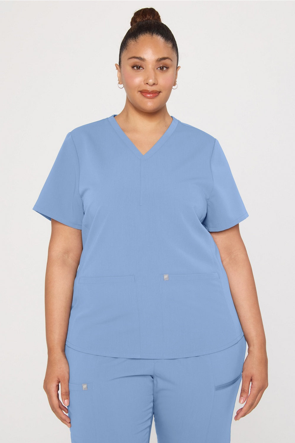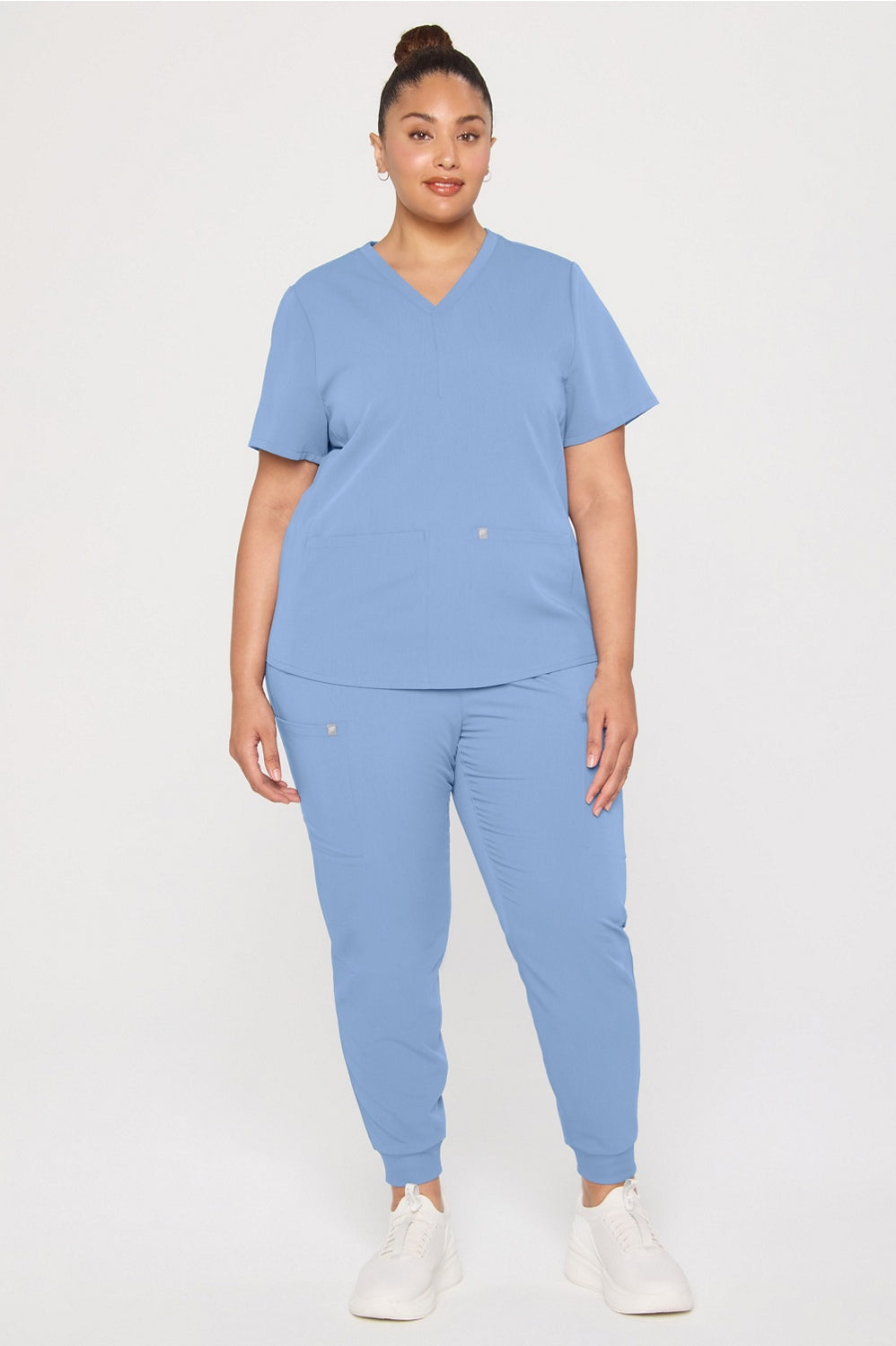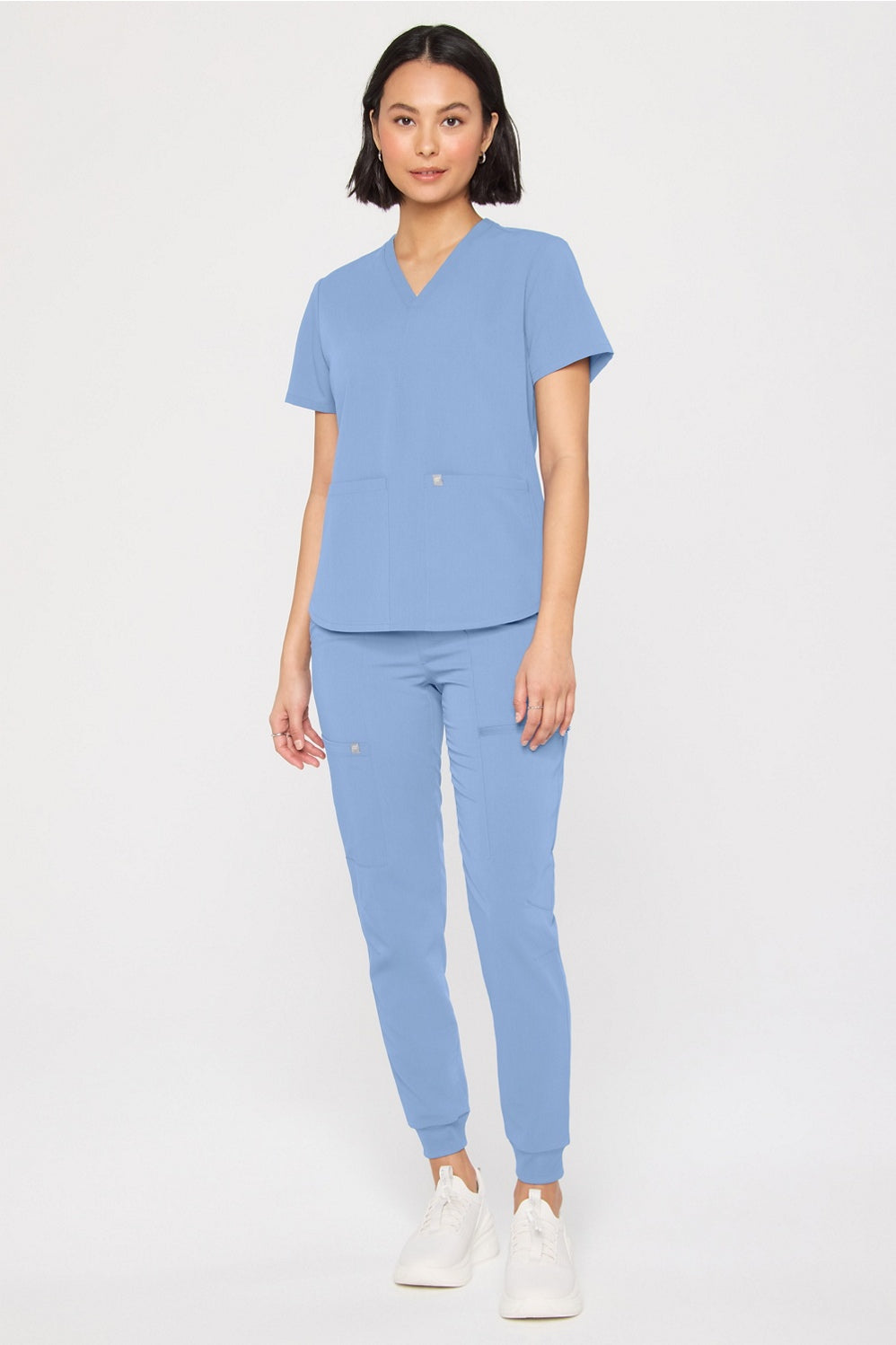 Made with superior stretch, durable water repellent tech, and a super-soft feel, this fabric is made to last & keep you comfortable through any shift. High-quality performance provides support and dependability, all while delivering a flattering finish.
