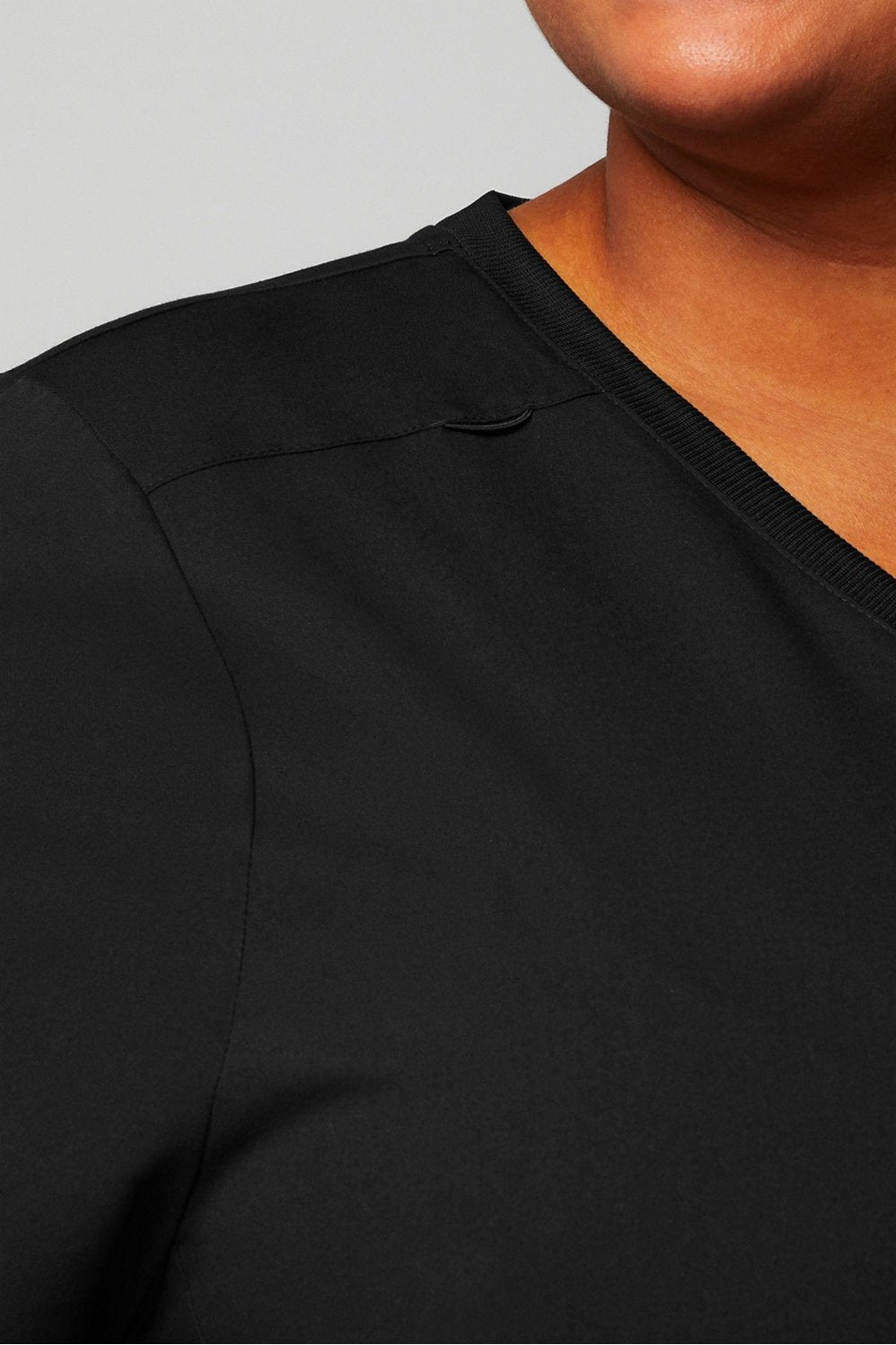 A functional update on our classic silhouette. Your new go-to scrub top has a semi-slim fit with four pockets and a bungee badge clip. Perfectly designed for 12-hour shifts and beyond.