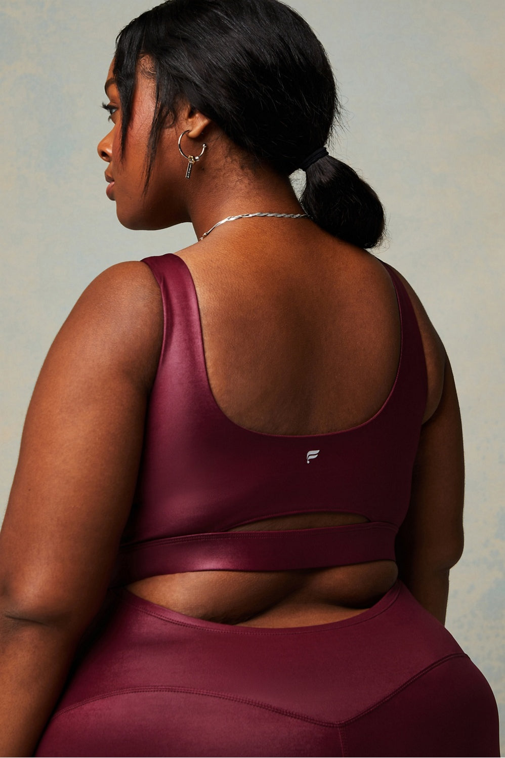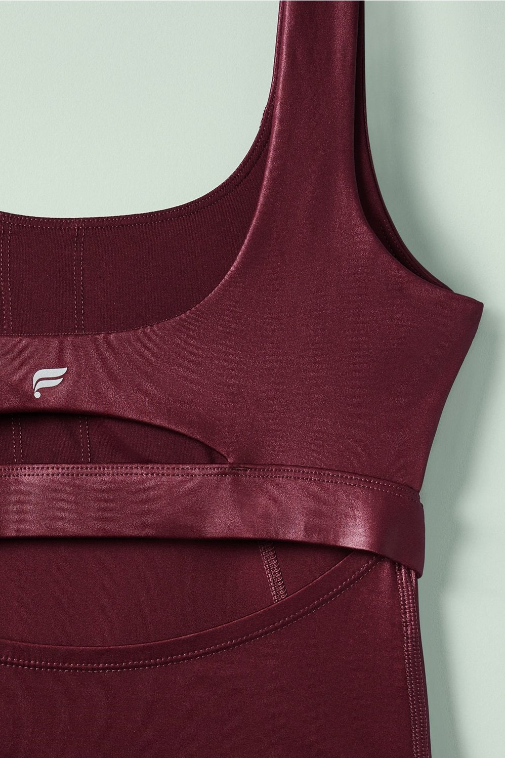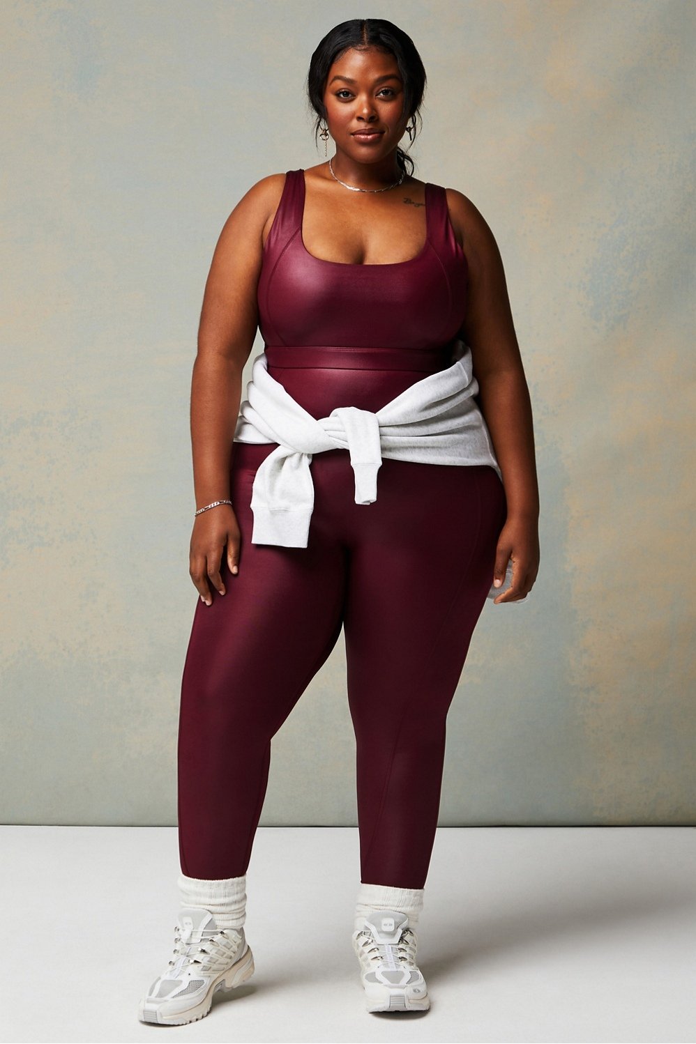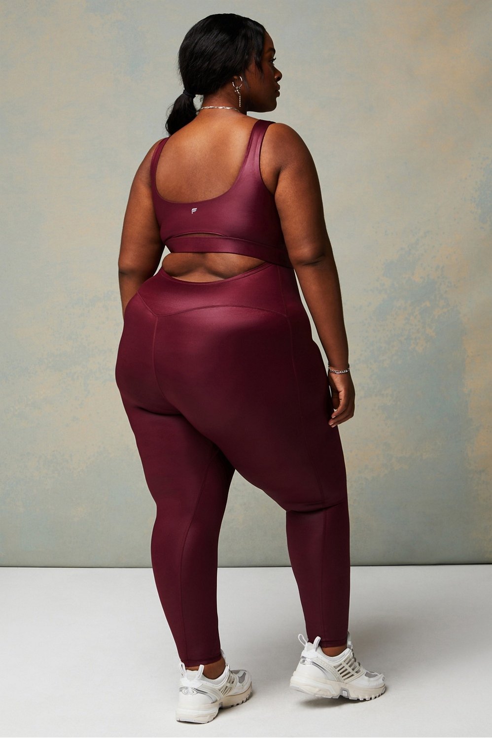 Shine on. This performance jumpsuit is made with a eco-friendly Motion365+ fabric in a shiny hue, and offers high compression and max breathability for any and every workout.
