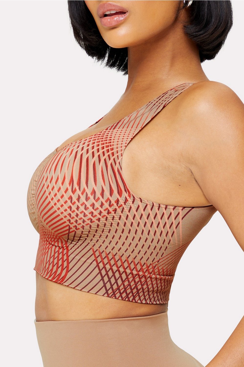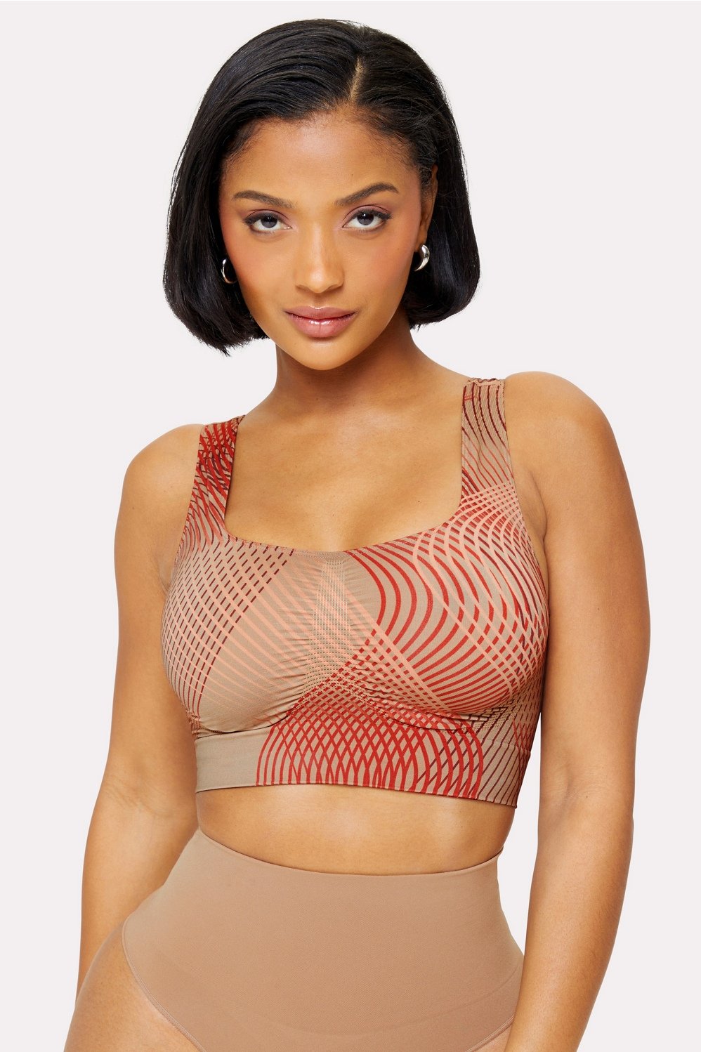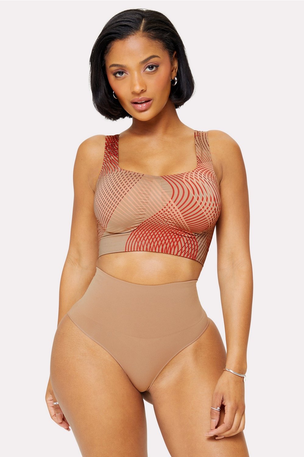 Our viral midi bra is made with seamless, 4-way stretch fabric, offering comfortable all-over compression and targeted zoning to define and support your bust. Thick straps stay put without digging in. Runs small. Size up for your best fit.