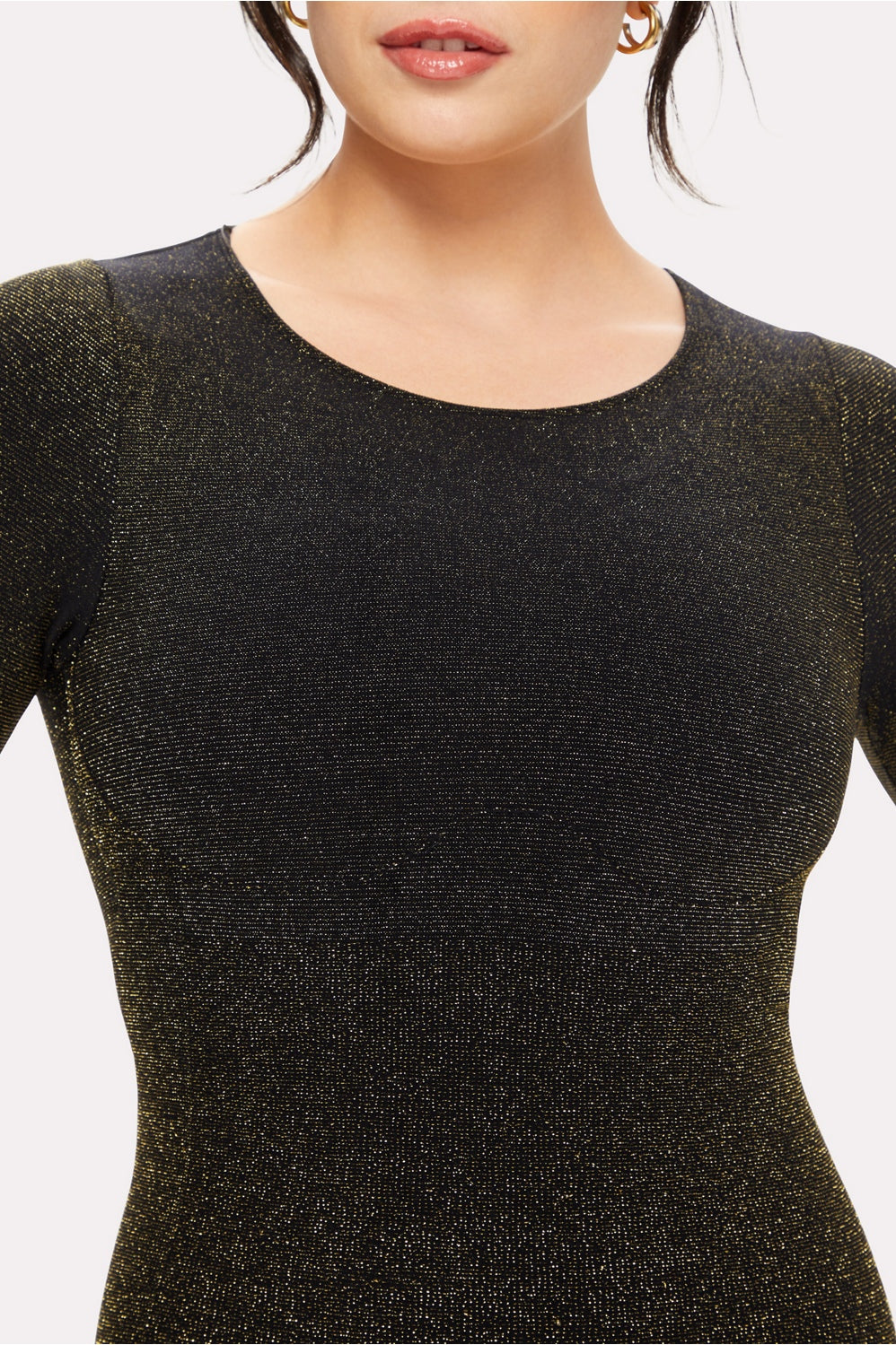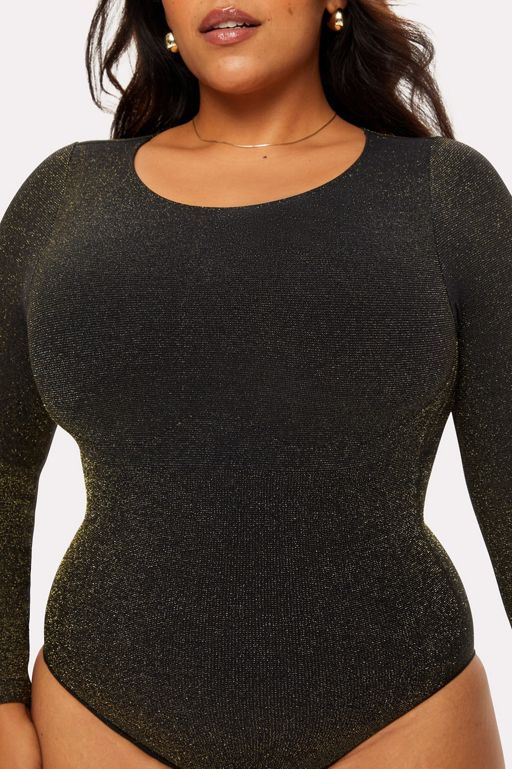 Revolutionary shapewear meets limited-edition sparkle. Our long sleeve bodysuit features all-around shaping compression, arm-smoothing sleeves, hidden interior anti-uniboob technology that supports the tiddies, 4-way stretch fabric and a brief bottom.