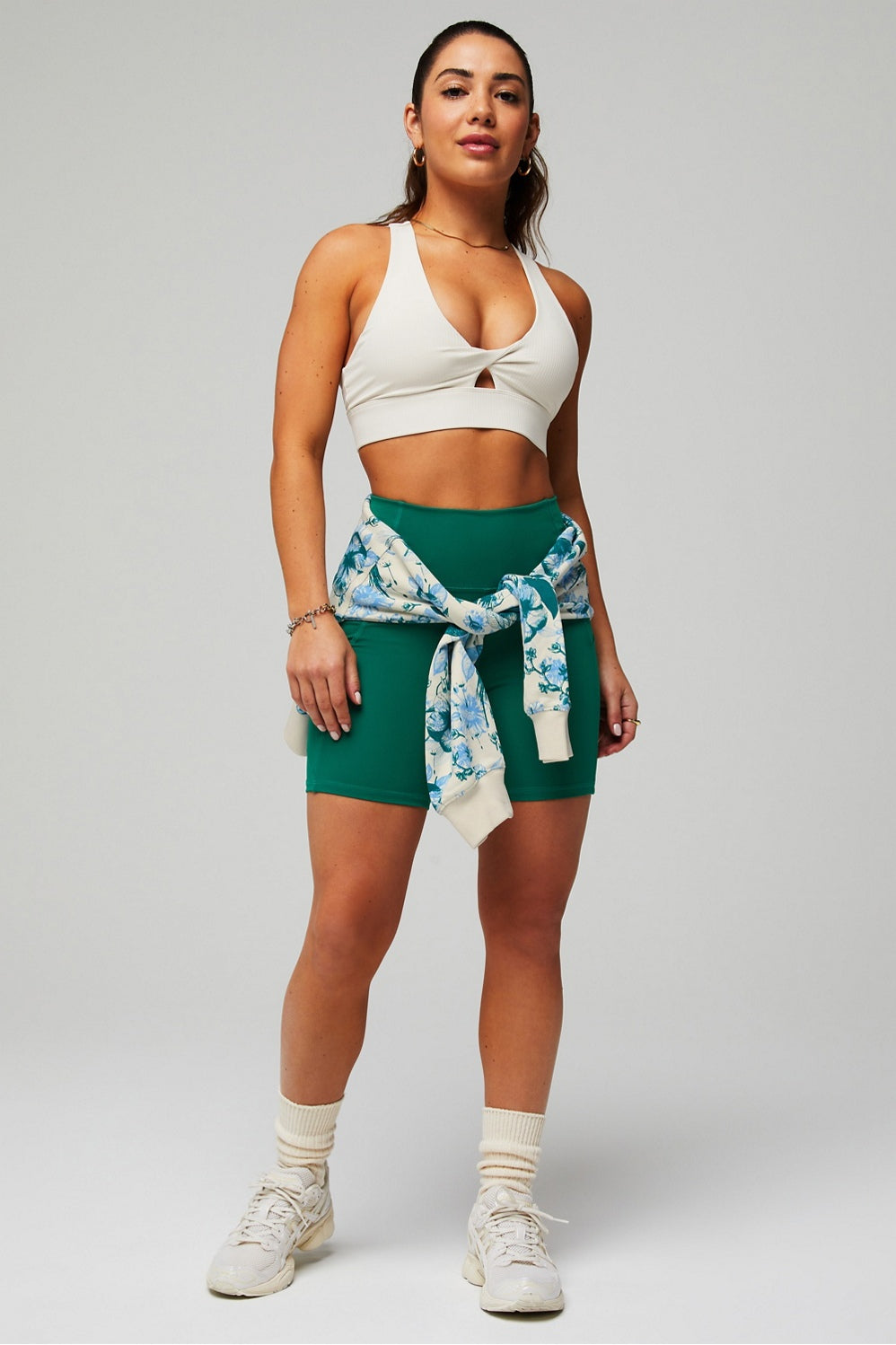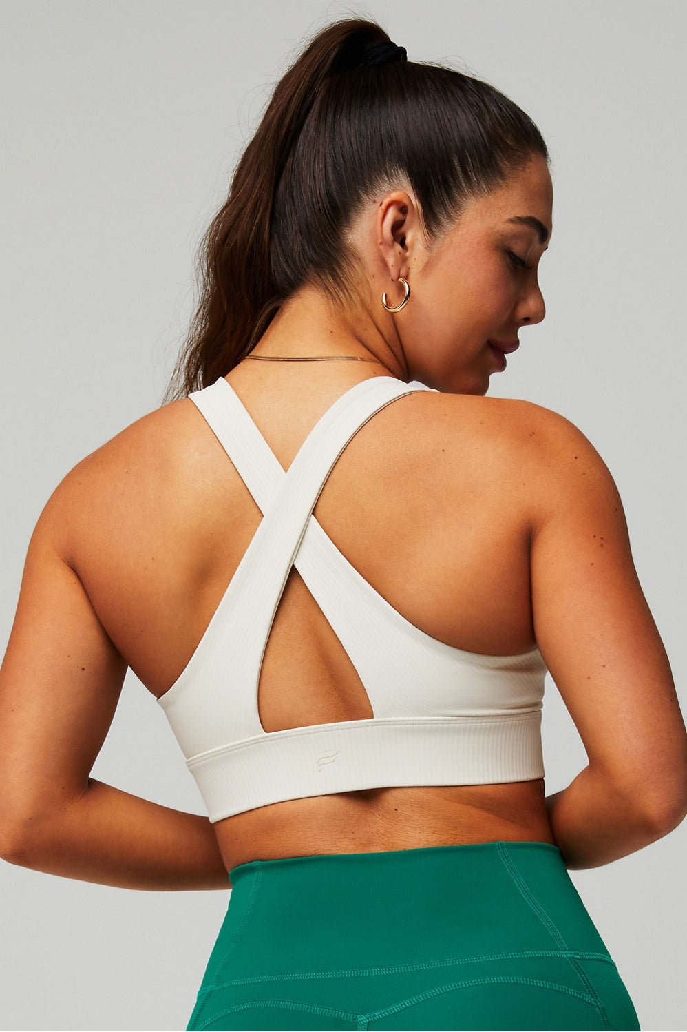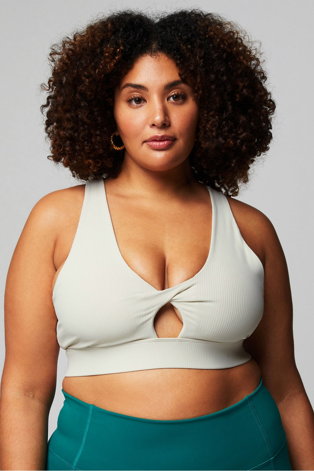Perfect for spin, studio, and hikes, this bra offers medium-impact support. We updated it with Performance Rib: our softest fabric, with a gorgeous ribbed texture. It gently lifts and holds you in, and also features a cute twist-front and removable cups.