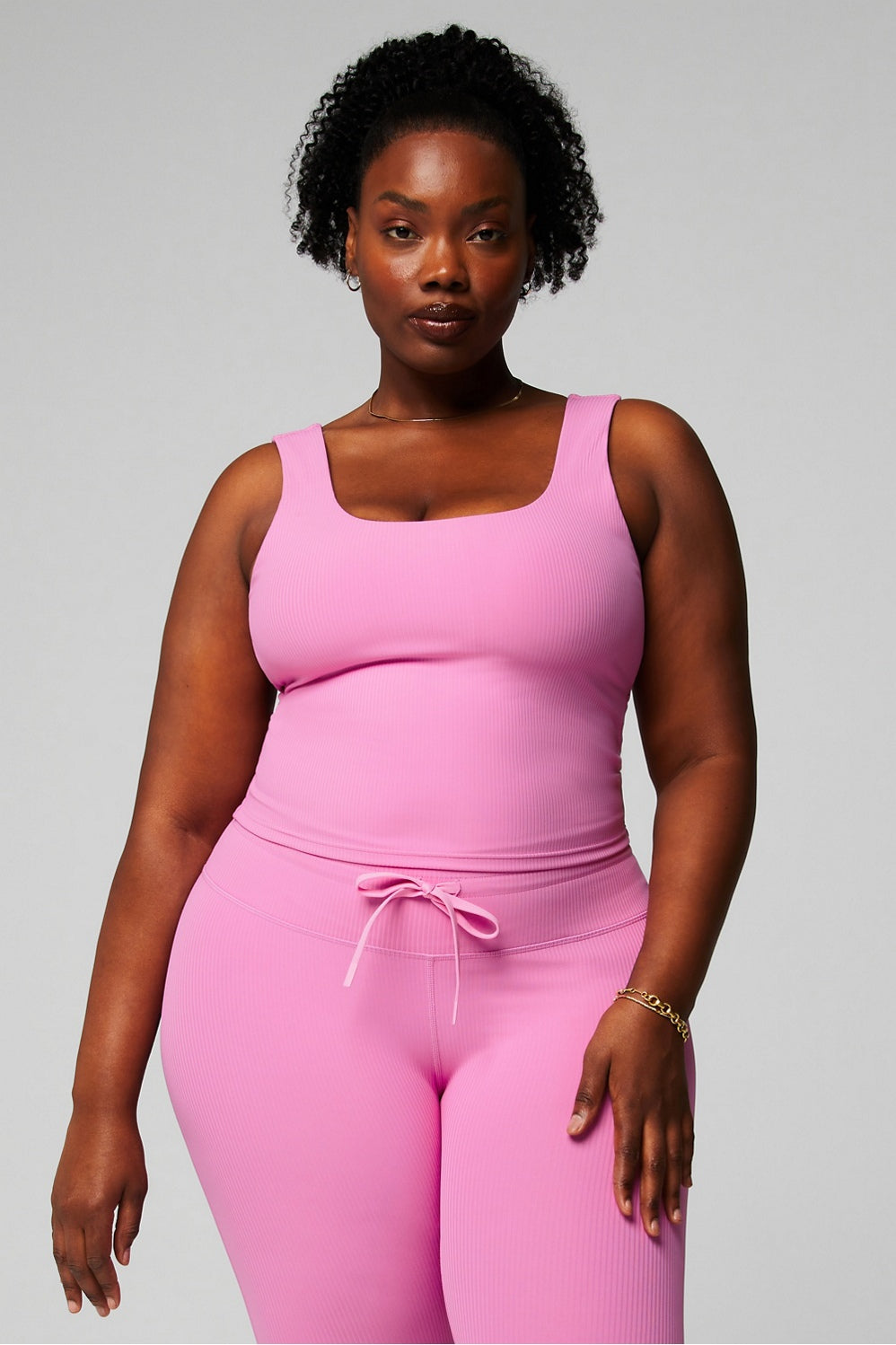 Top things off. This wide-strap tank has been updated in Performance Rib: our softest fabric, with a gorgeous ribbed texture. It features a stylish twist detail at back and a comfortable, convenient built-in bra perfect for studio workouts.