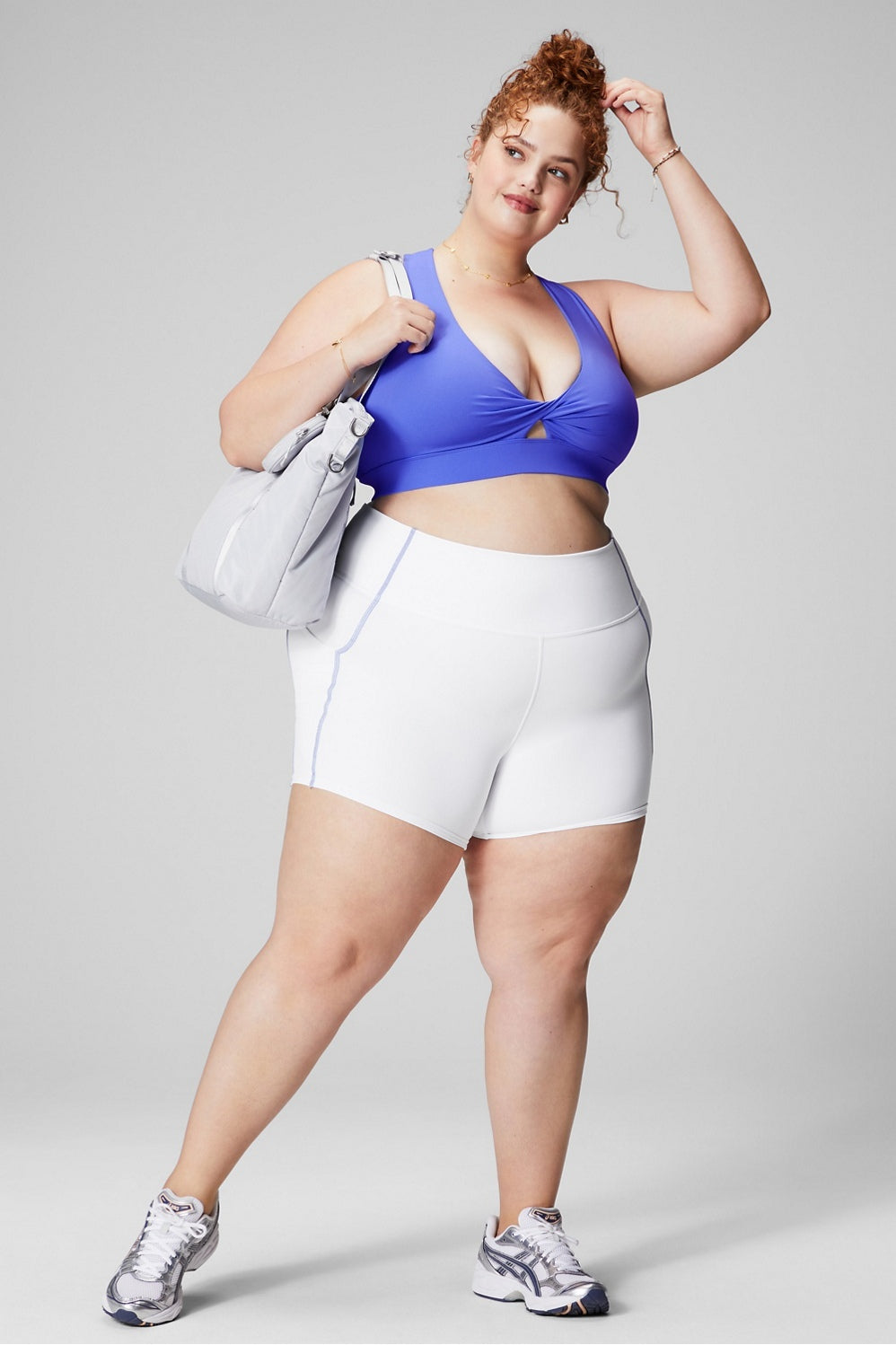 Perfect for spin, studio, and hikes, our most flattering bra offers medium-impact support without the squeeze. Designed to solve side spillage, while gently lifting, shaping, and holding you in. Features a ventilated keyhole and crisscrossing straps.