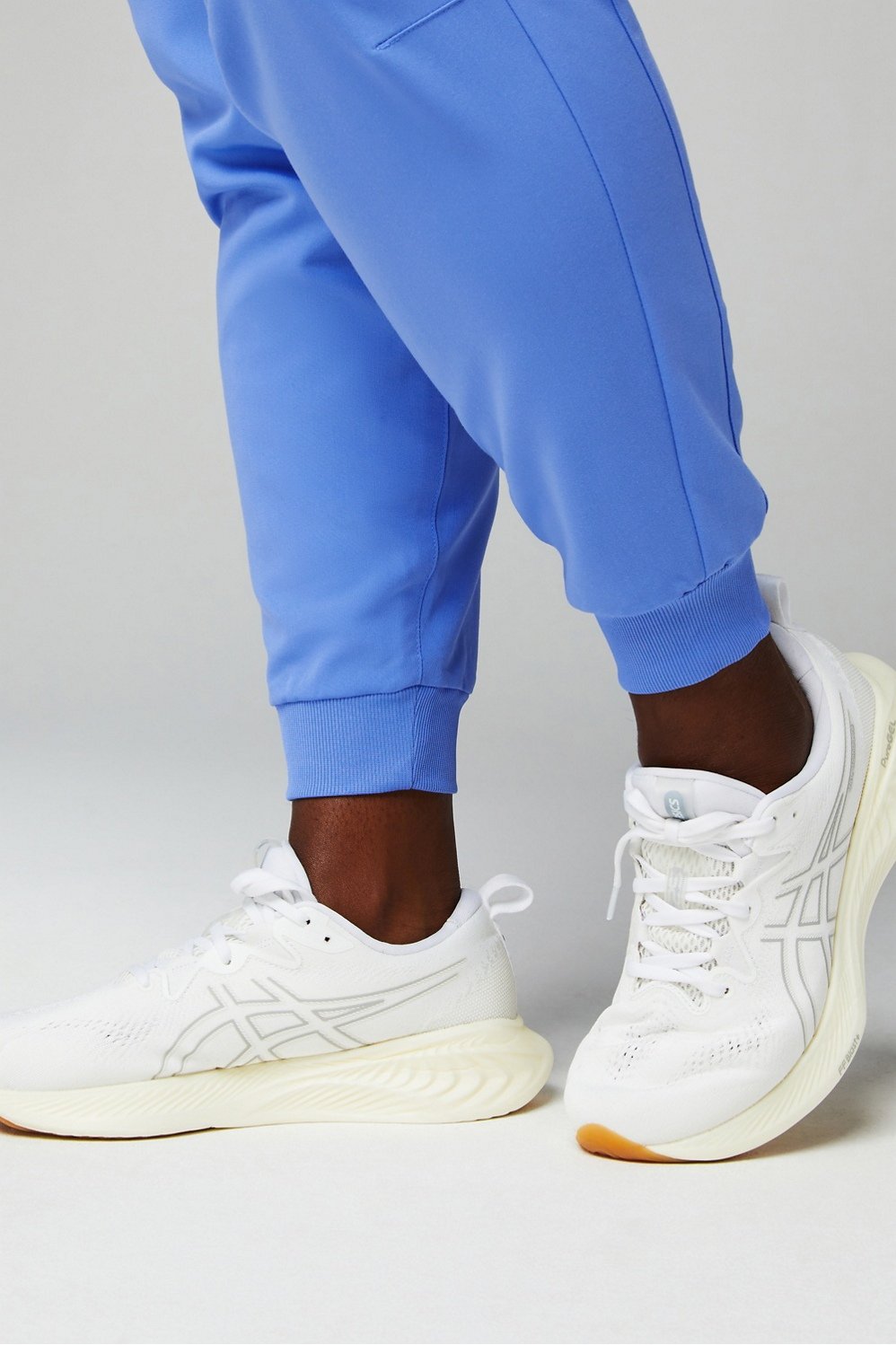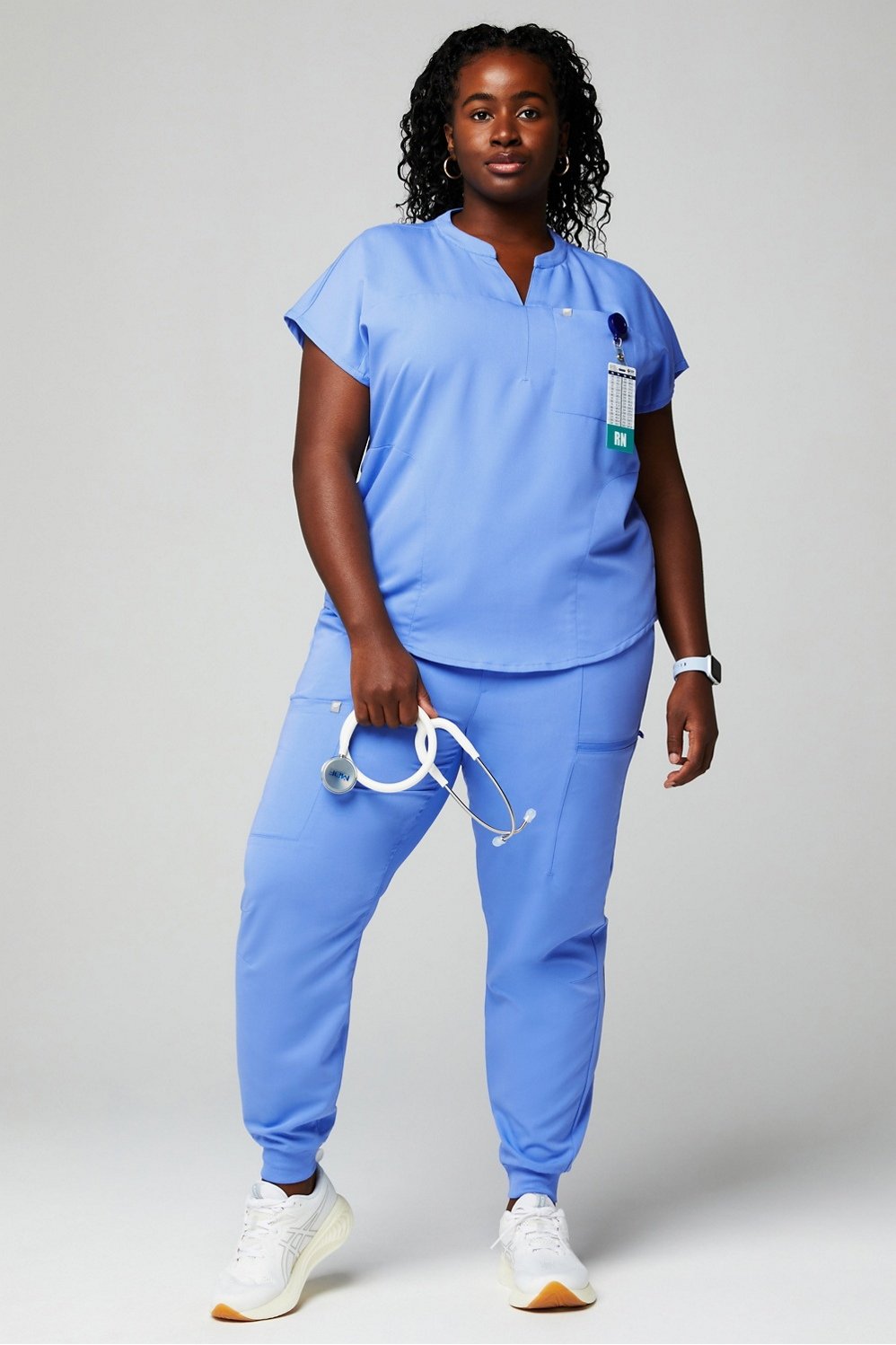 Designed for max comfort with all of your essential pockets in mind. Our Signature Stay-Put Waistband allows for a full range of motion, thanks to its elastic ribbing + adjustable drawcord security combo. These are the only scrub joggers you'll ever need. Fabric infused with anti-microbial tech.