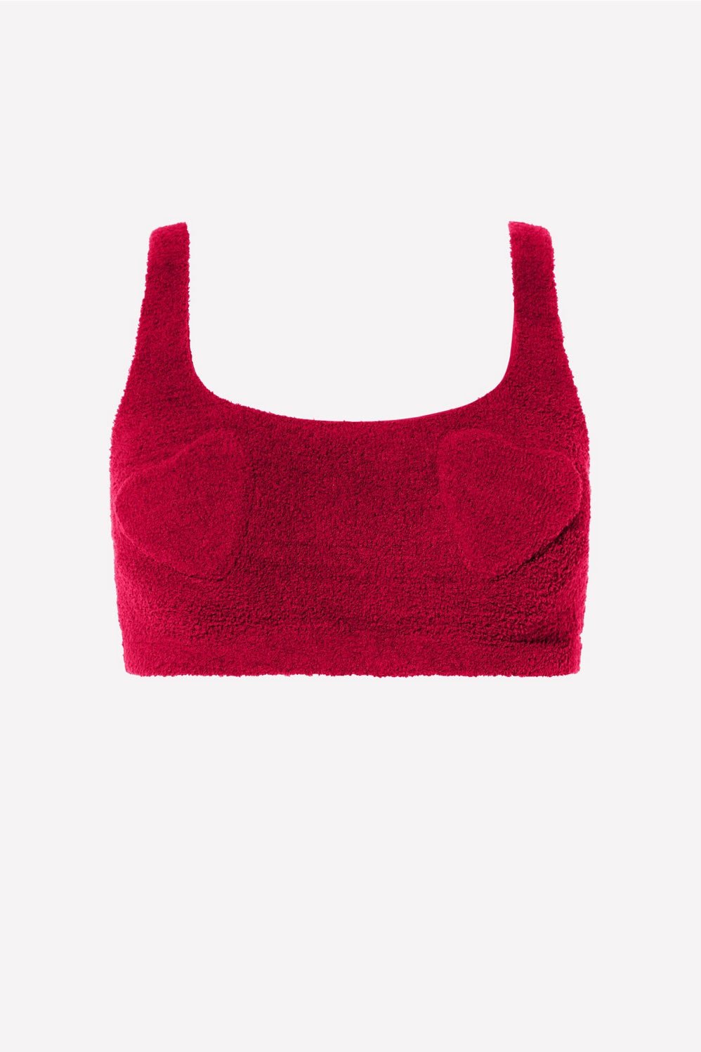 The soft, cozy fabric you love now in a cute and ultra-comfy bra you'll want to lounge in 24/7. This heart-adorned style features stabilizing lining to keep the tiddies in place and an encased elastic band that gives you a lift.