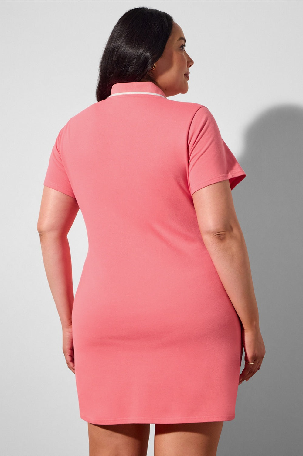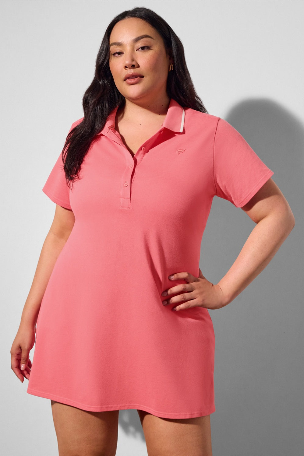Malbon Golf co-creators Stephen & Erica Malbon bring their signature vision to an ultra-limited collection, exclusively for Fabletics. Call it a two-fer. This court-ready dress-and-short combo brings breathable stretch, style, and function. With separate PureLuxe shorts (with pockets), a ribbed collar, button placket, short sleeves, and cotton piqué fabric, it’s sporty and built to move.