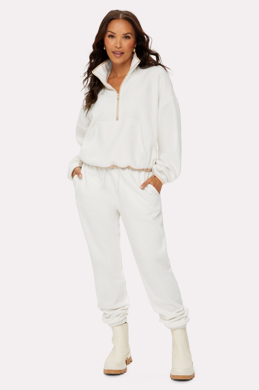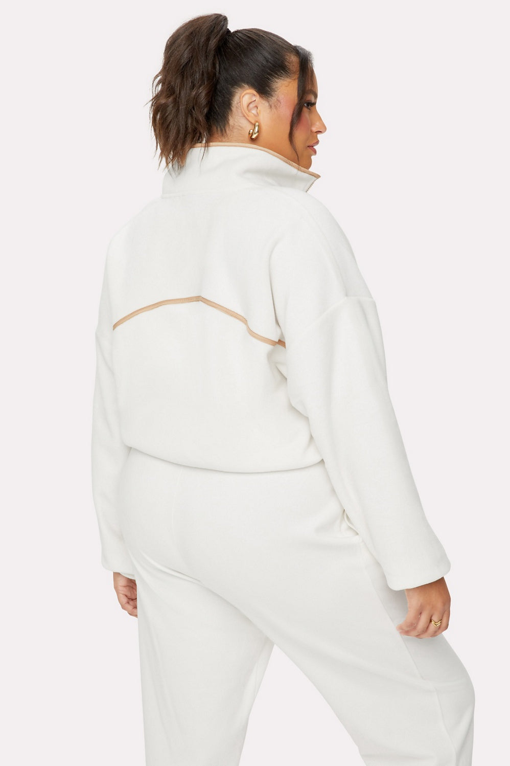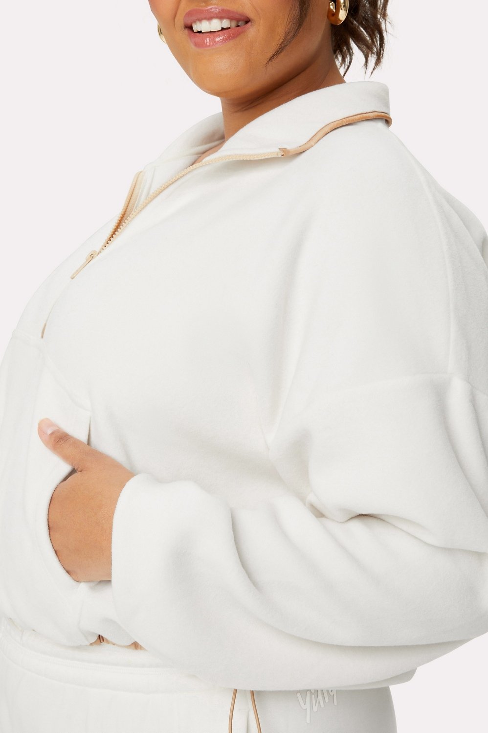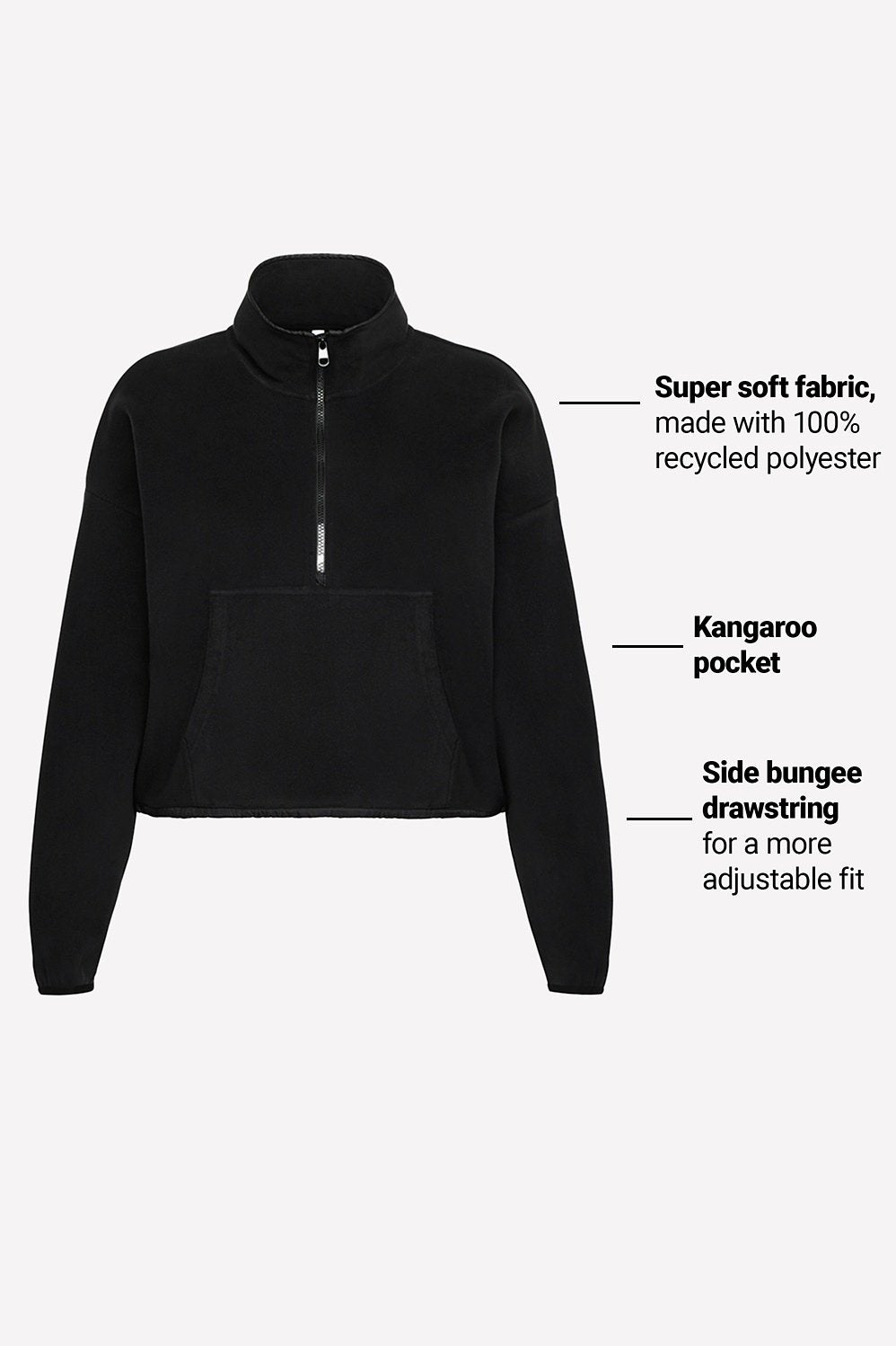 A throw-on-and-go staple for crisp days ahead. Made with ultra-soft, hand-brushed fabric, featuring a half-zip for easy wear and a roomy front pocket to keep your hands toasty. Slightly cropped with a bungee at the waist for an adjustable fit.