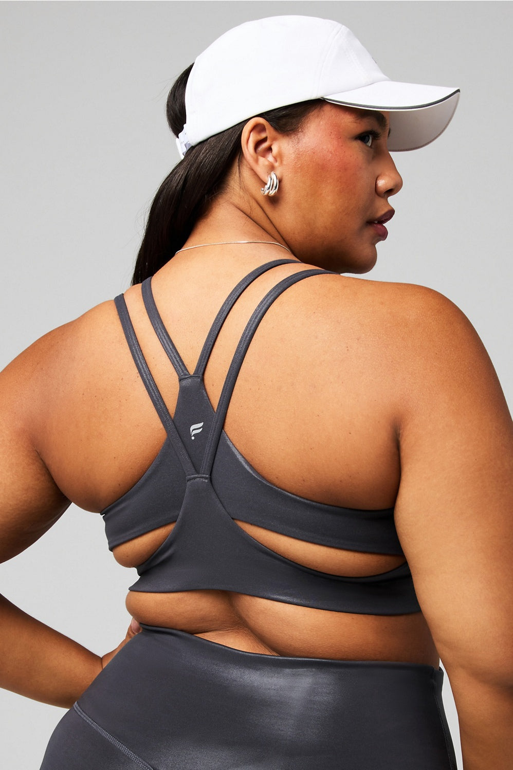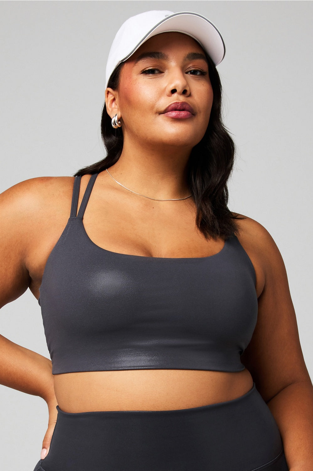 Our bestselling low-impact bra, now with a high-shine twist. Serve main character energy in this low-impact bra with a glam remix. Designed with a strappy racerback, it stuns on or off the mat.